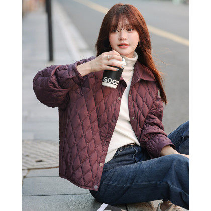 【轻暖小菱格】2025冬通勤翻领90鸭绒轻薄羽绒服简约宽松女式外套