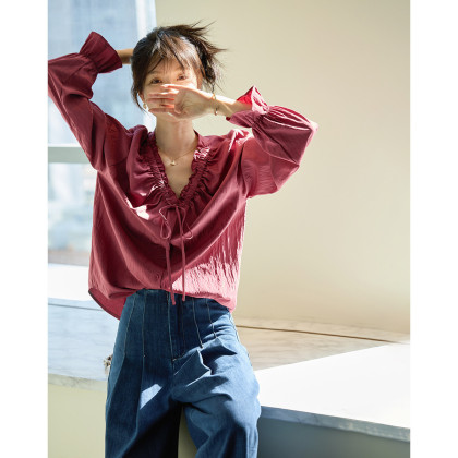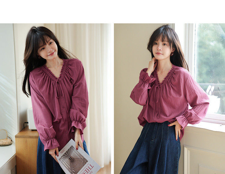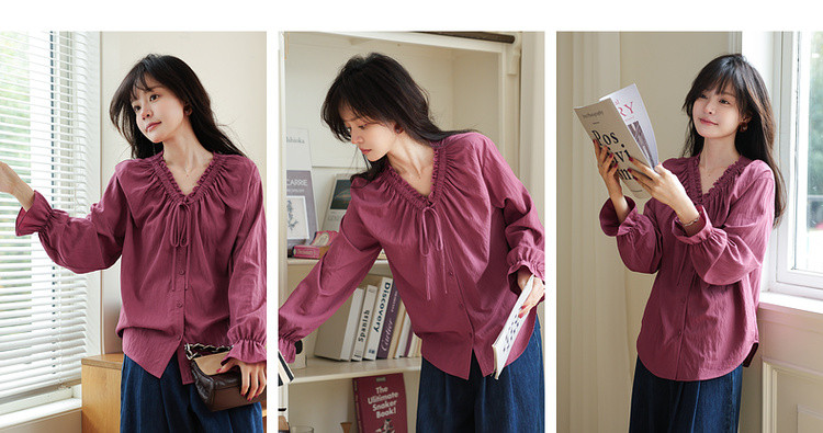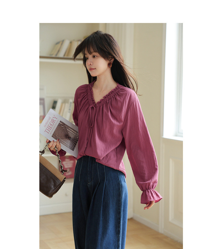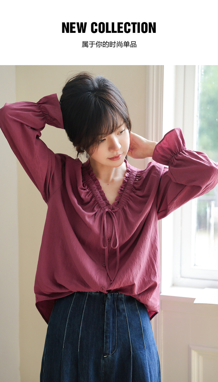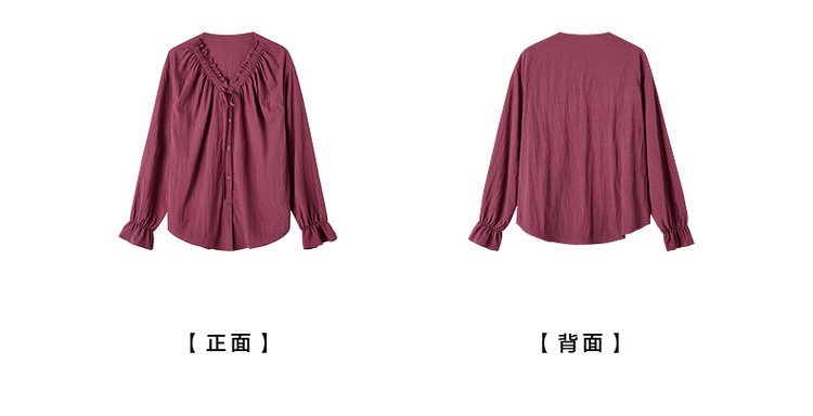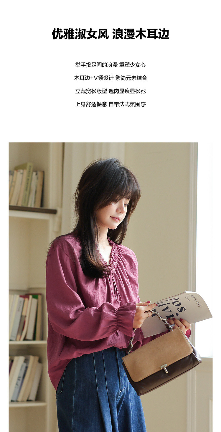 【色彩哲学家】秋季多巴胺木耳花边气质V领衬衫宽松藏肉女式上衣