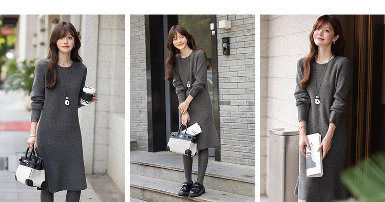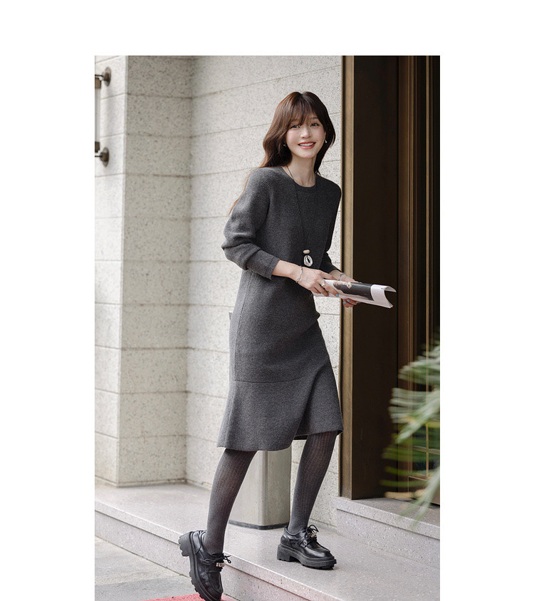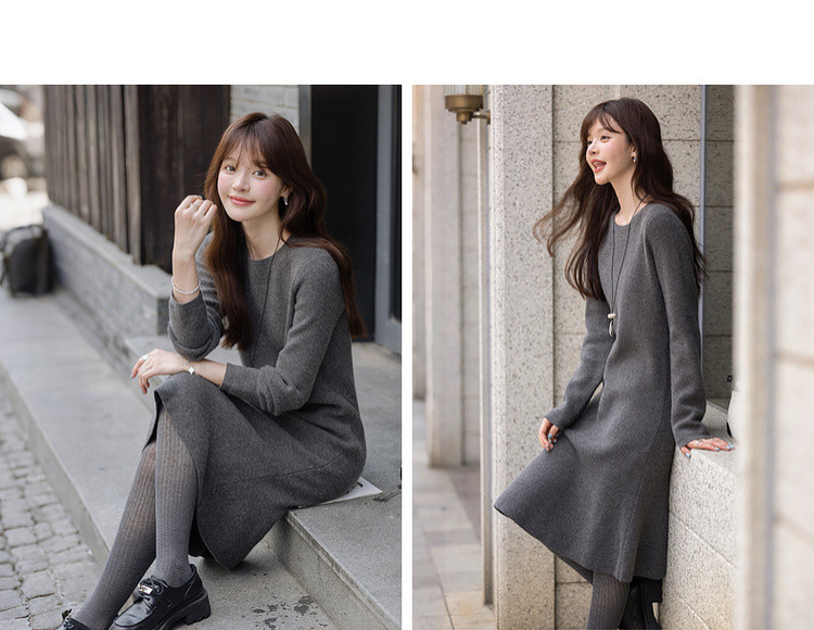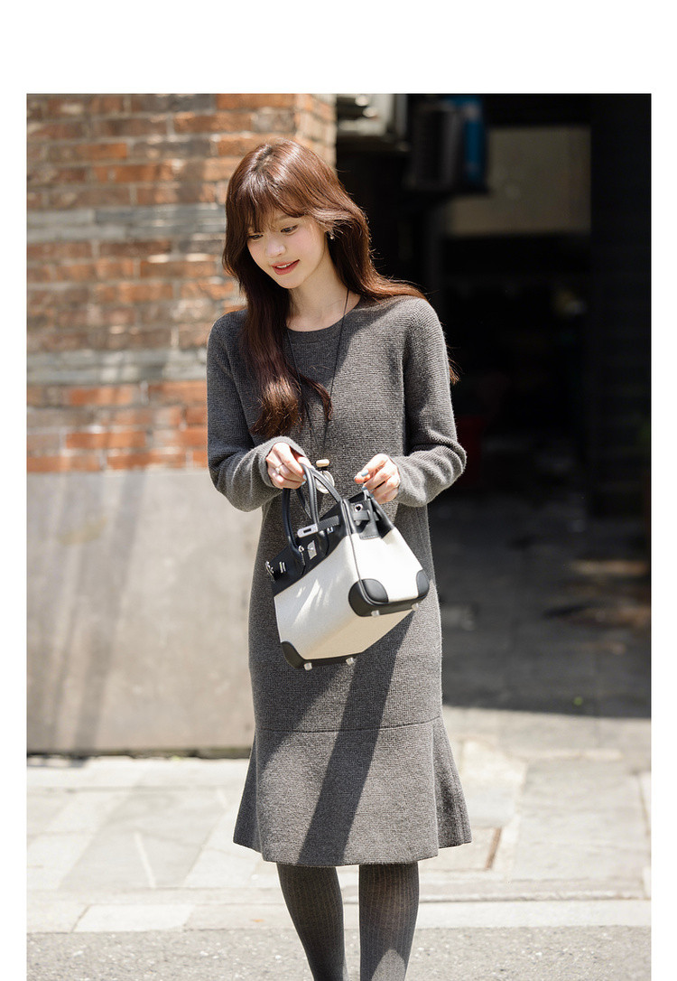 【智暖格调】2025冬慵懒风圆领鱼尾裙柔软舒适气质针织连衣裙女长款