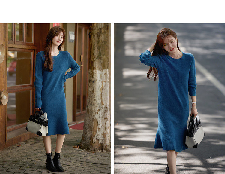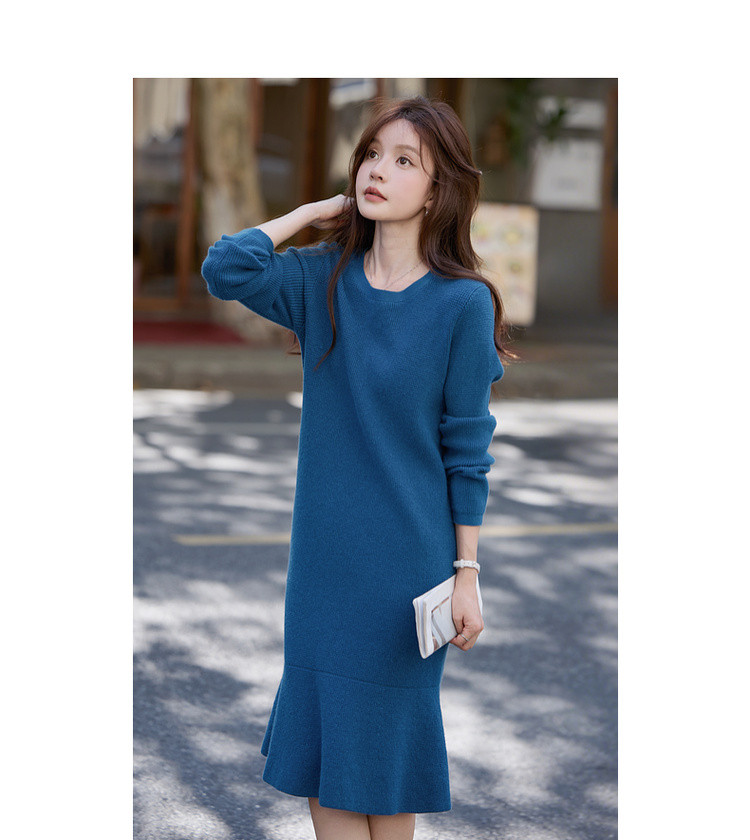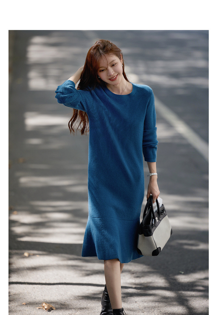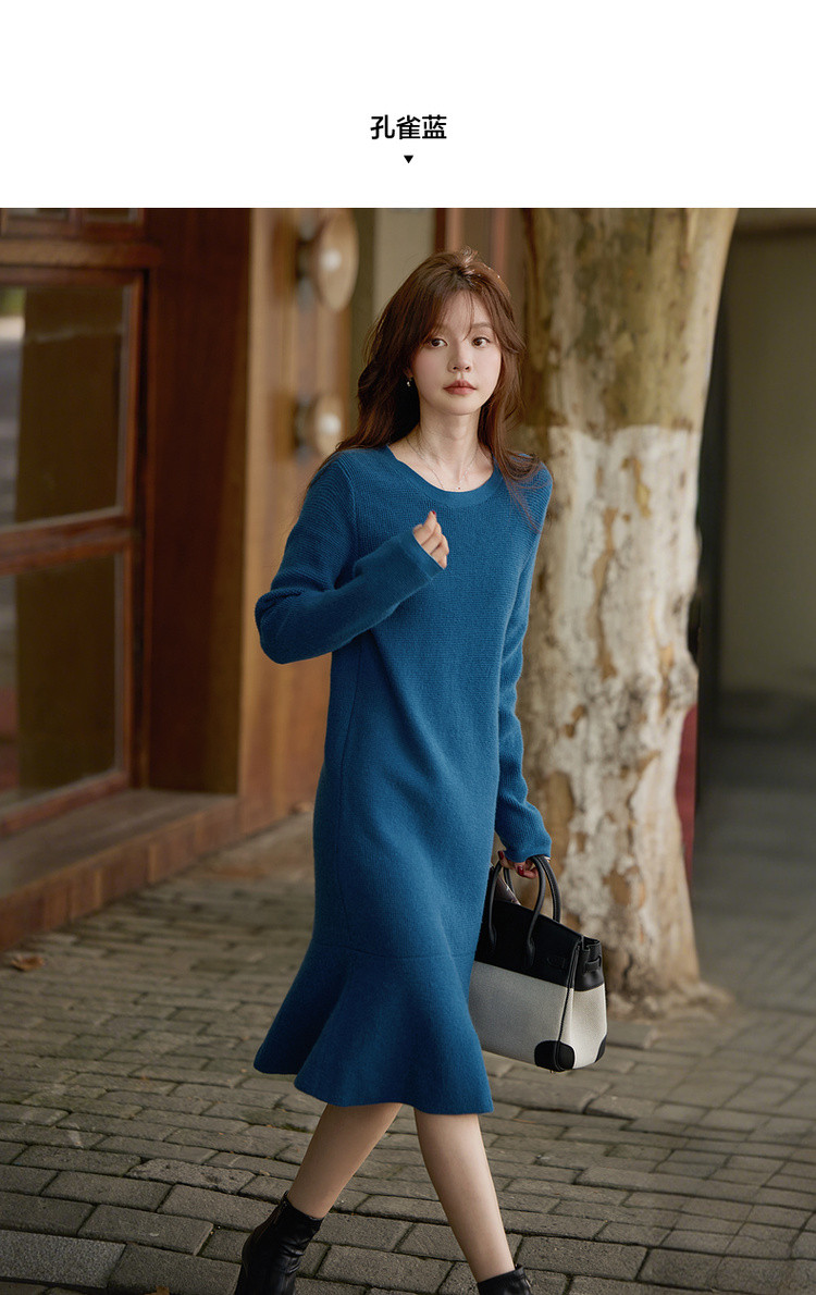 【智暖格调】2025冬慵懒风圆领鱼尾裙柔软舒适气质针织连衣裙女长款