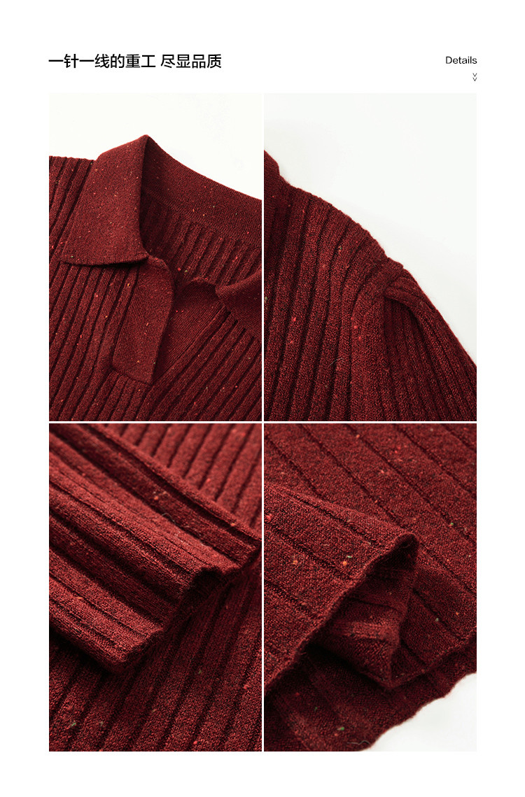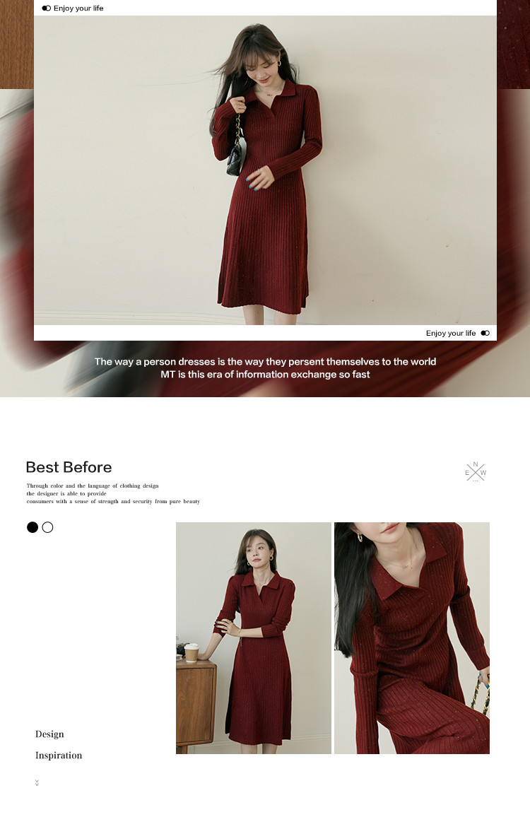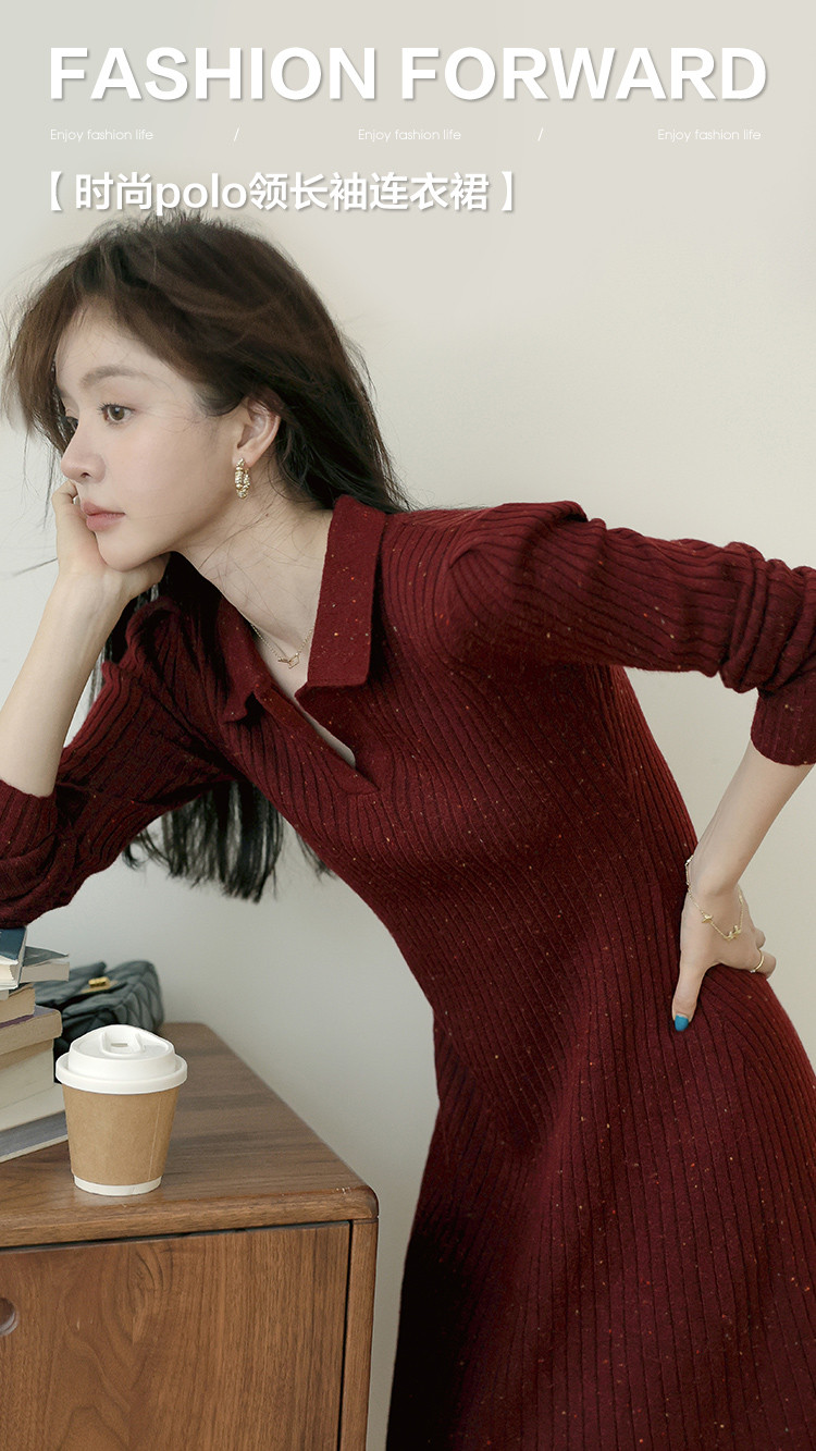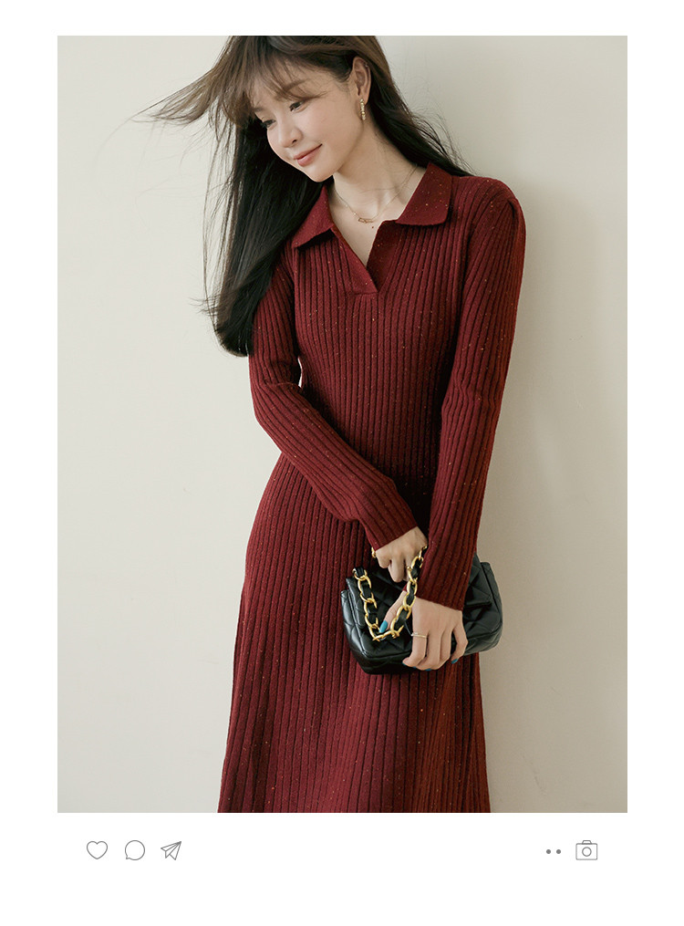 【曲线回廊】秋法式智感V字翻领舒弹藏肉含绵羊毛连衣裙女长款