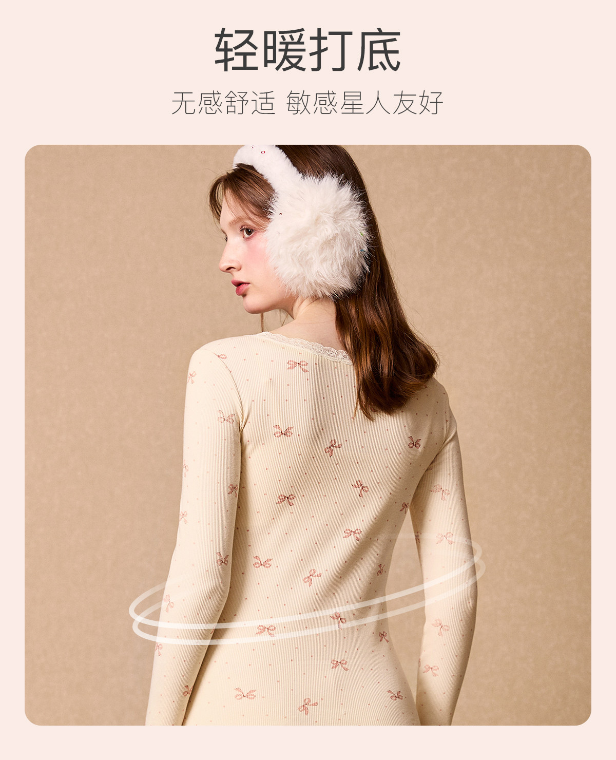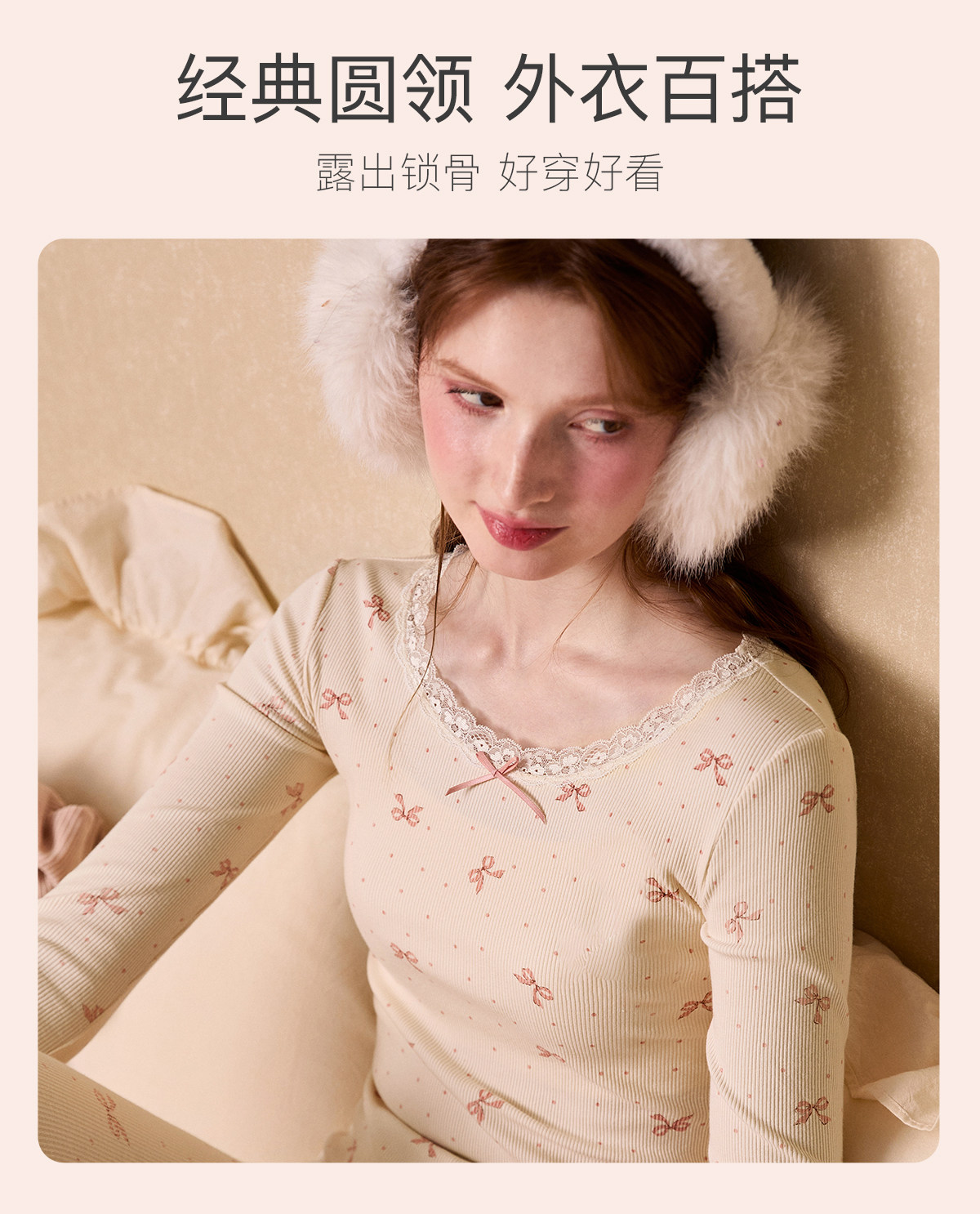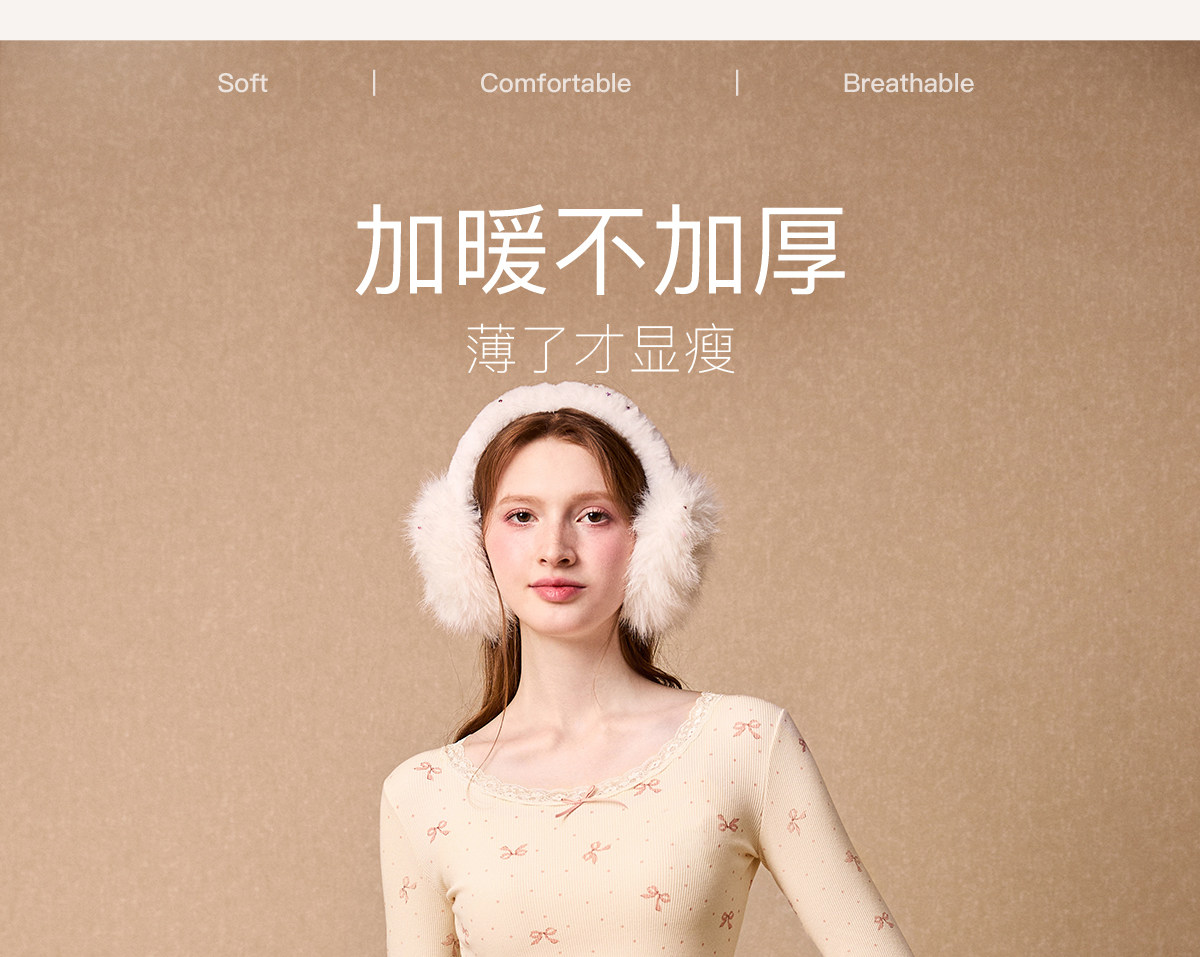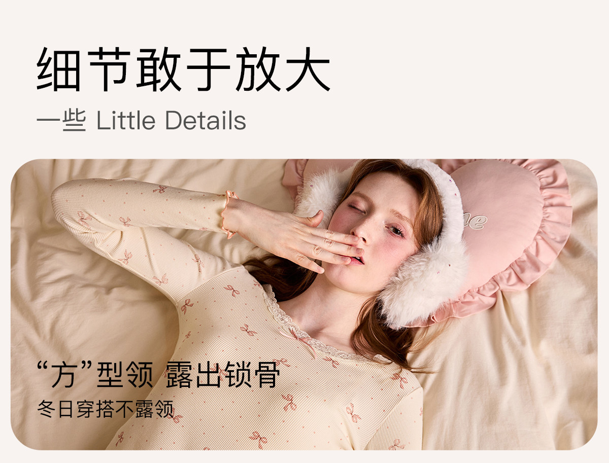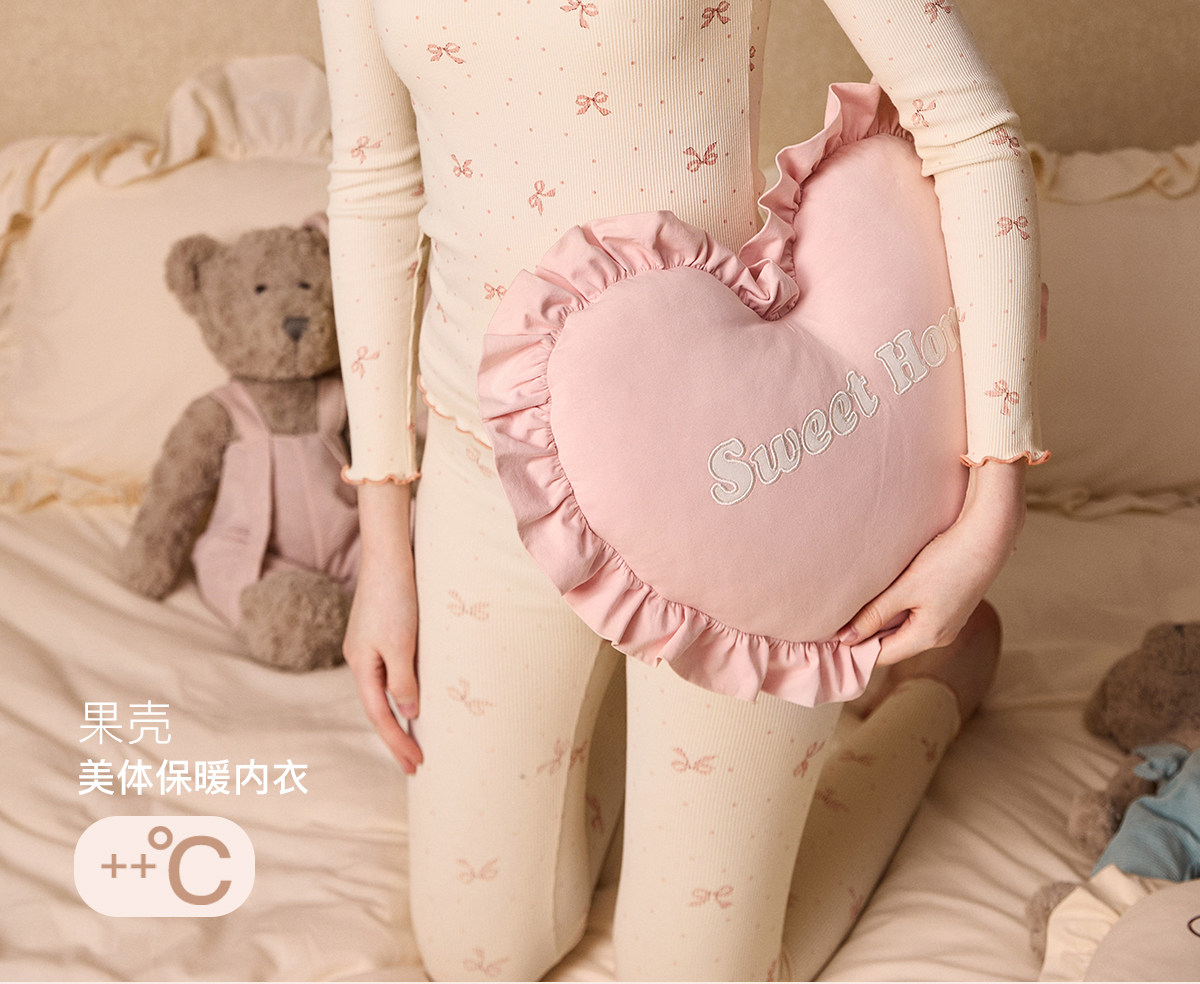 Gukoo/果壳保暖内衣女秋冬蝴蝶结满印新款贴身女士秋衣秋裤套装