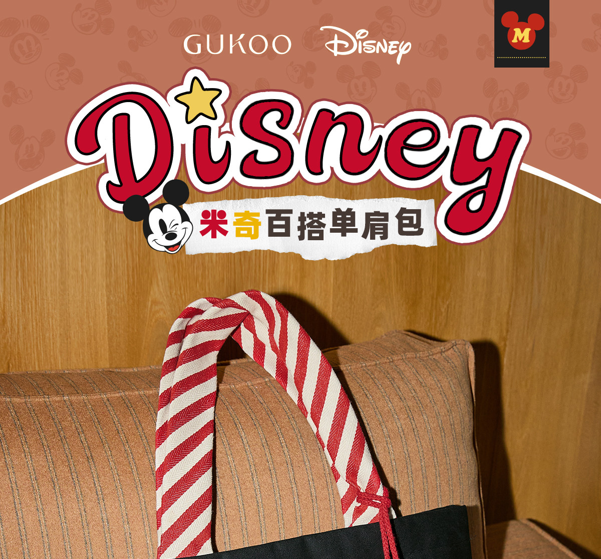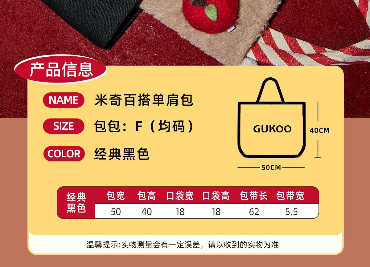 Gukoo/果壳手提包托特包迪士尼包包单肩帆布包大容量帆布通勤包