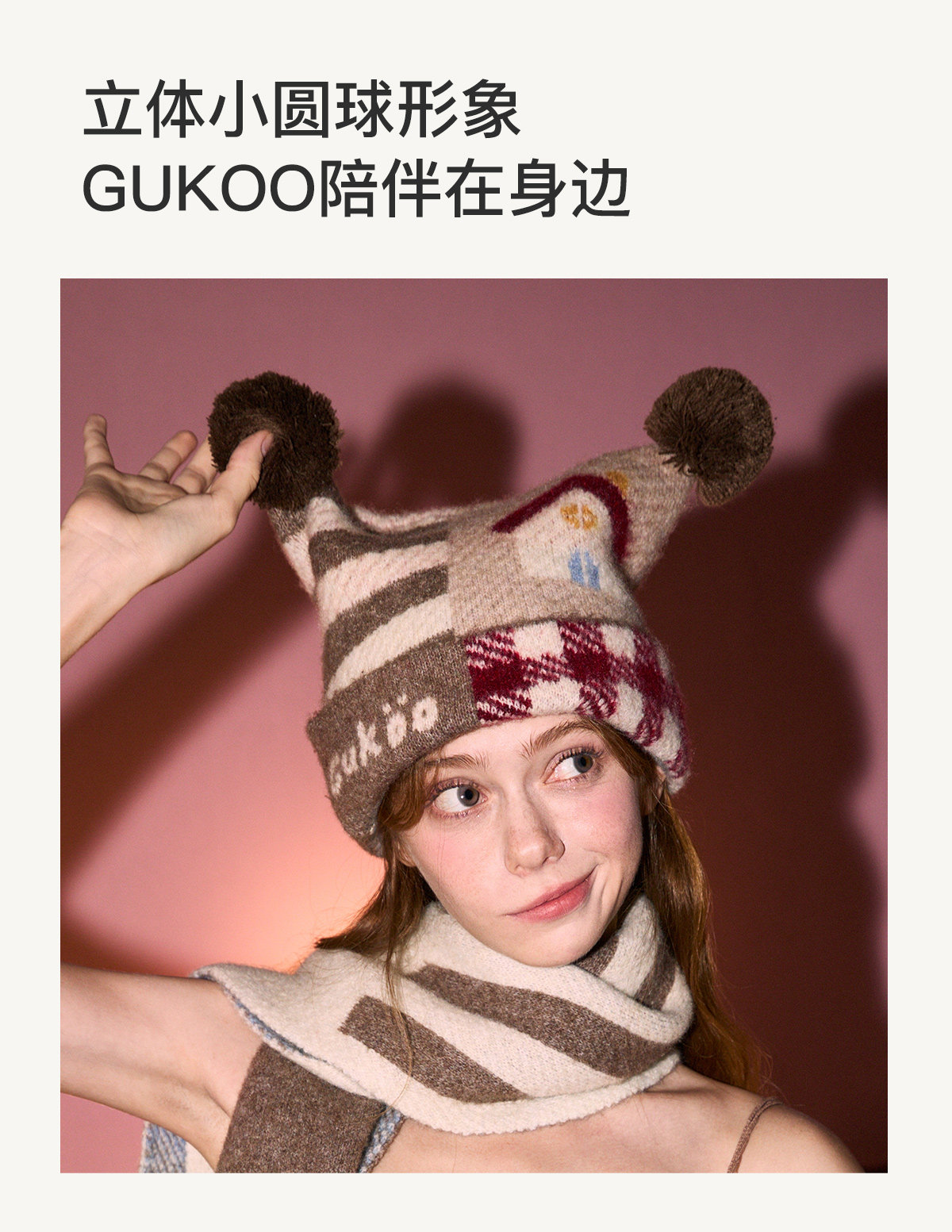 Gukoo/果壳冬季帽子2025年新款保暖米咖色针织帽