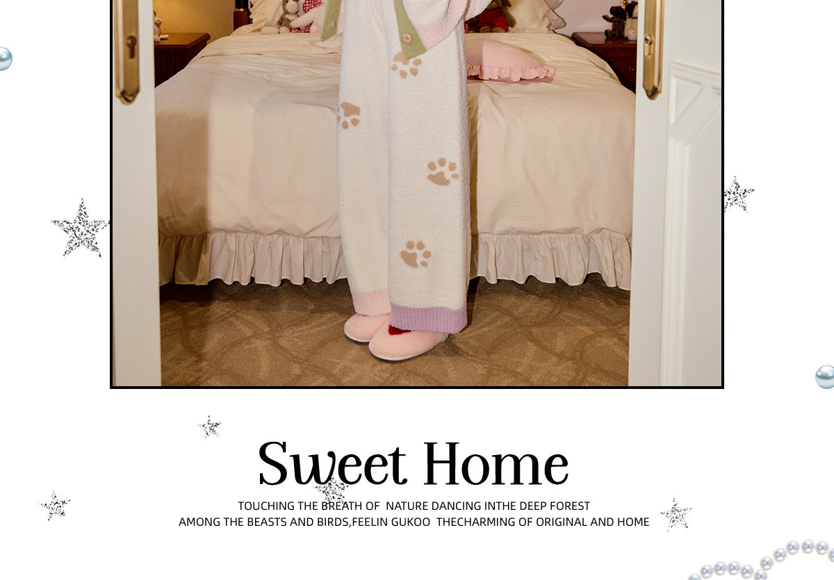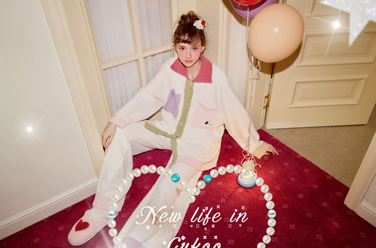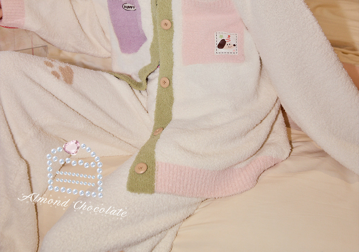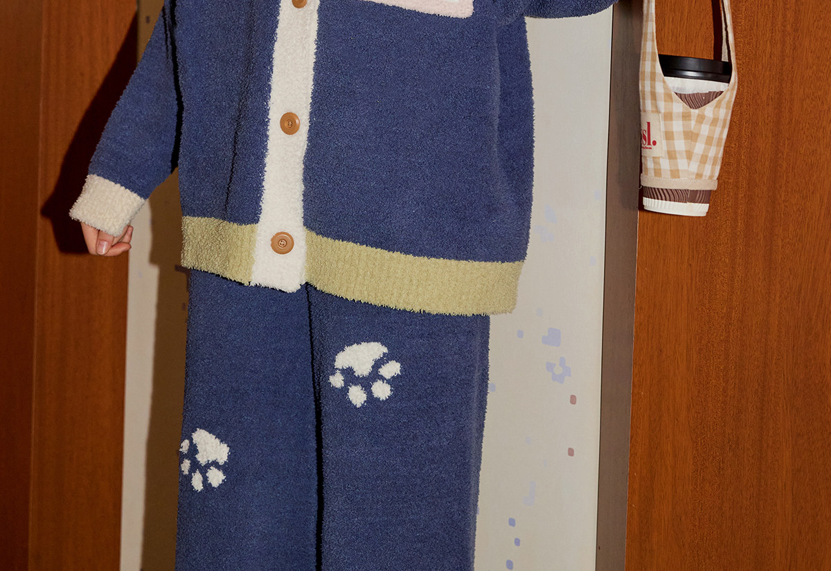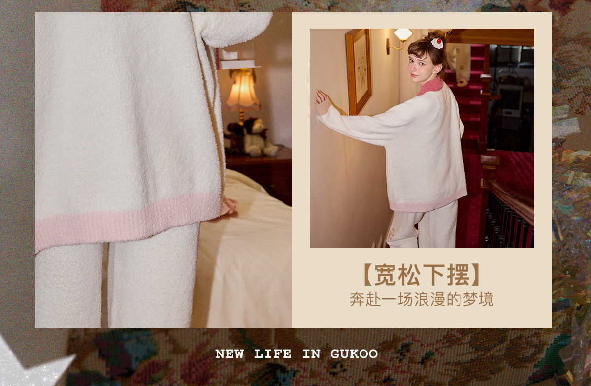 Gukoo/果壳睡衣冬季半边绒保暖新款轰轰小狗可爱女士家居服套装D