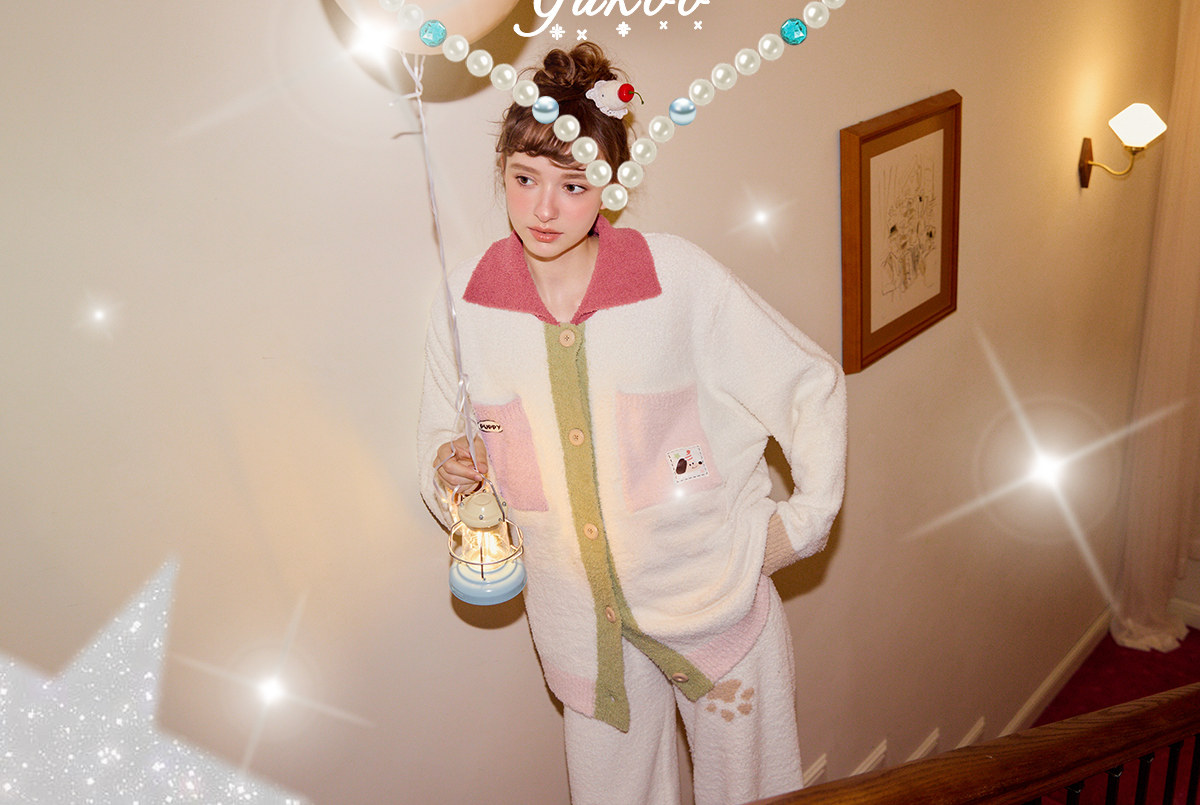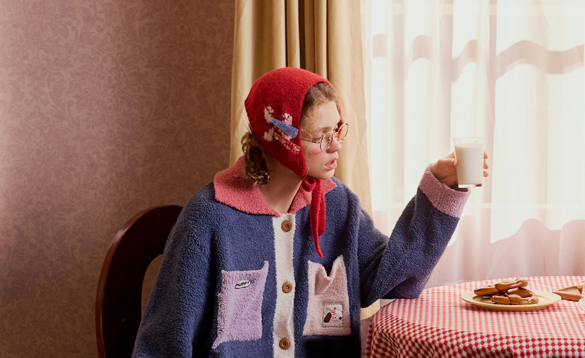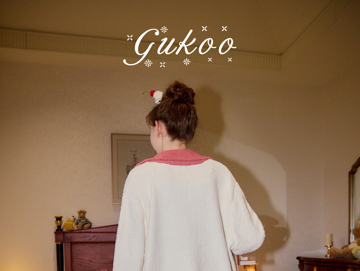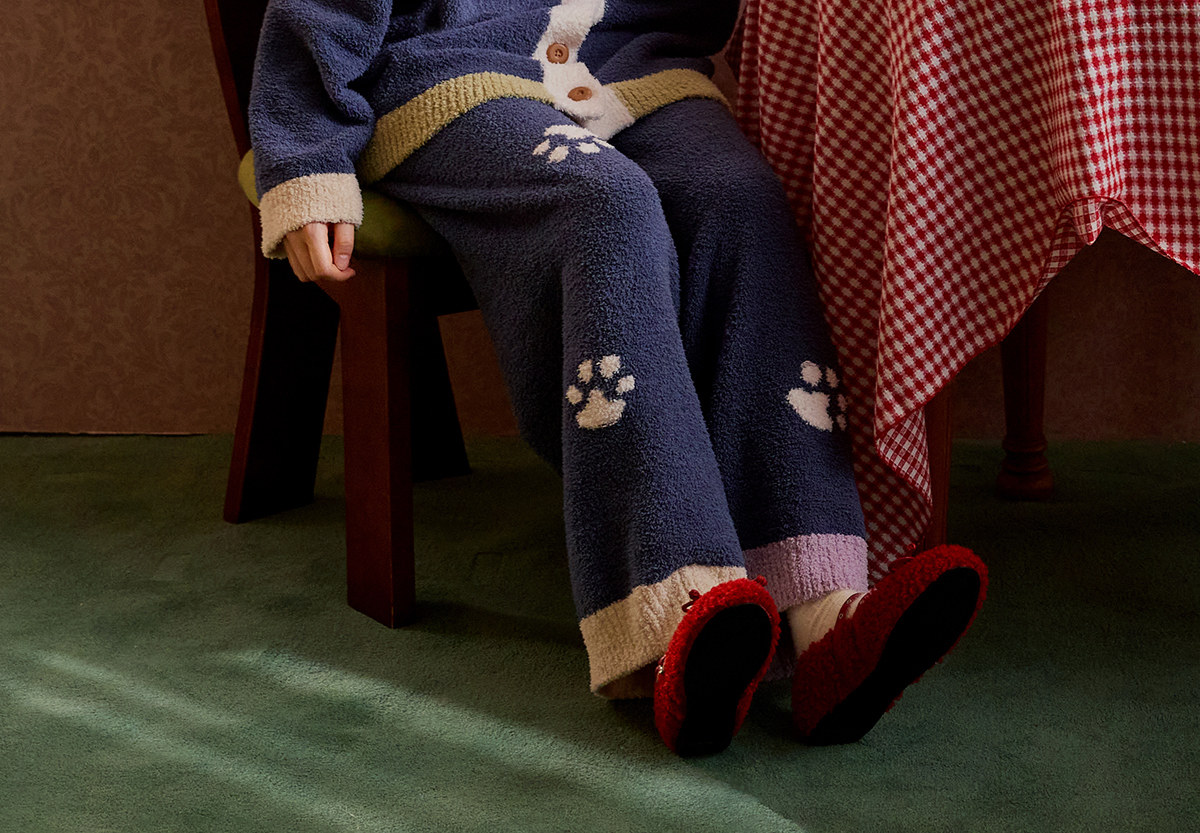 Gukoo/果壳睡衣冬季半边绒保暖新款轰轰小狗可爱女士家居服套装D