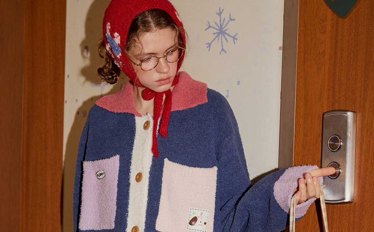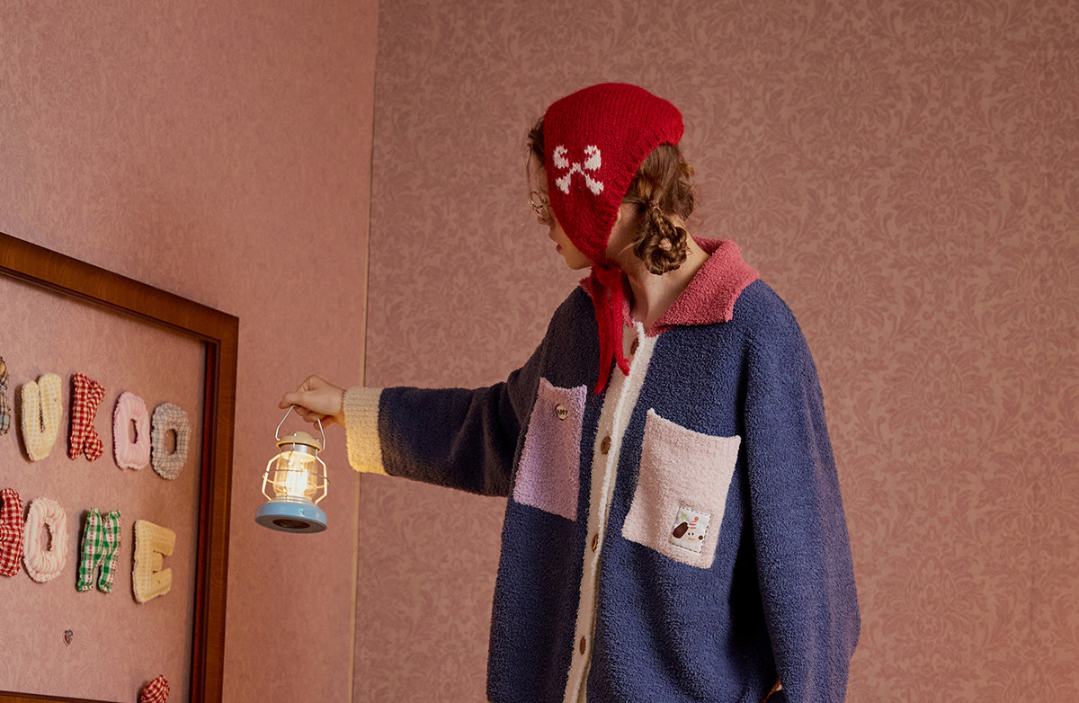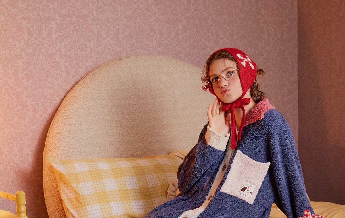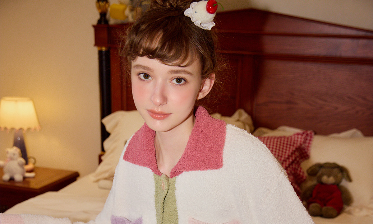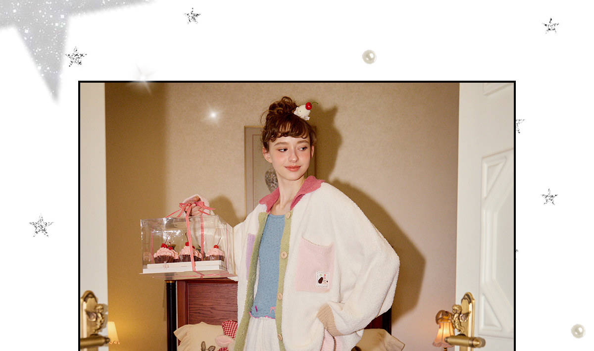 Gukoo/果壳睡衣冬季半边绒保暖新款轰轰小狗可爱女士家居服套装D