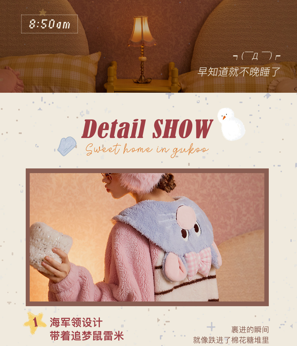 Gukoo/果壳睡袍女冬季毛绒保暖新款料理鼠王联名女士家居服睡袍D