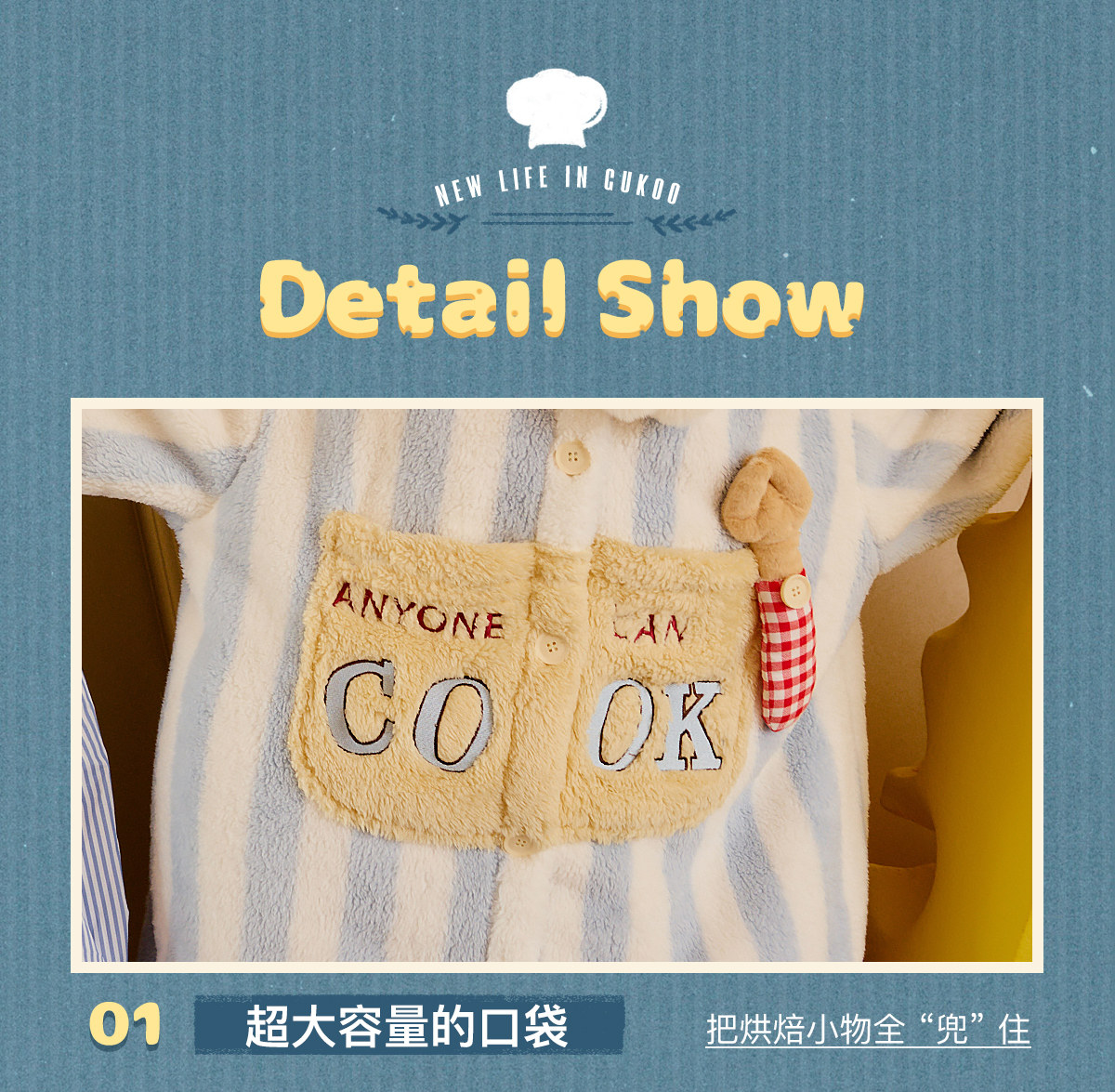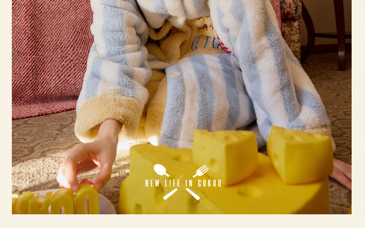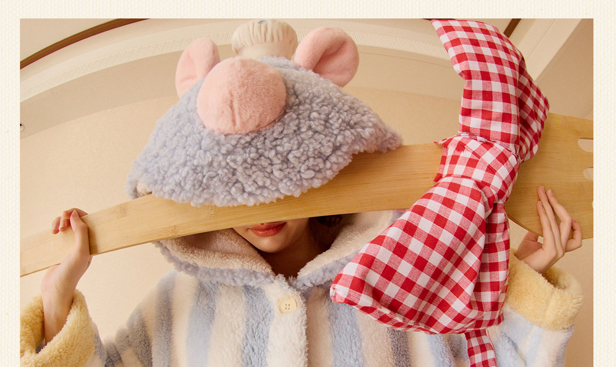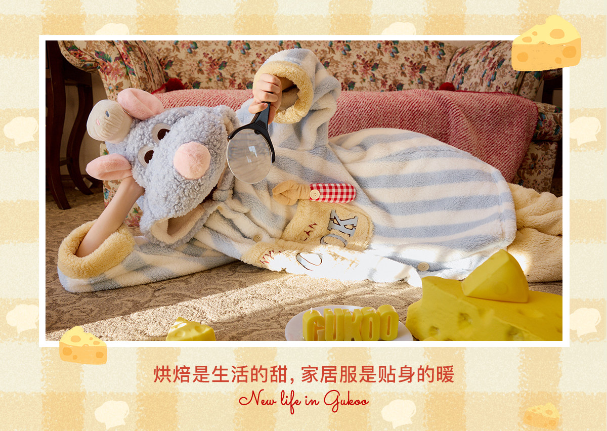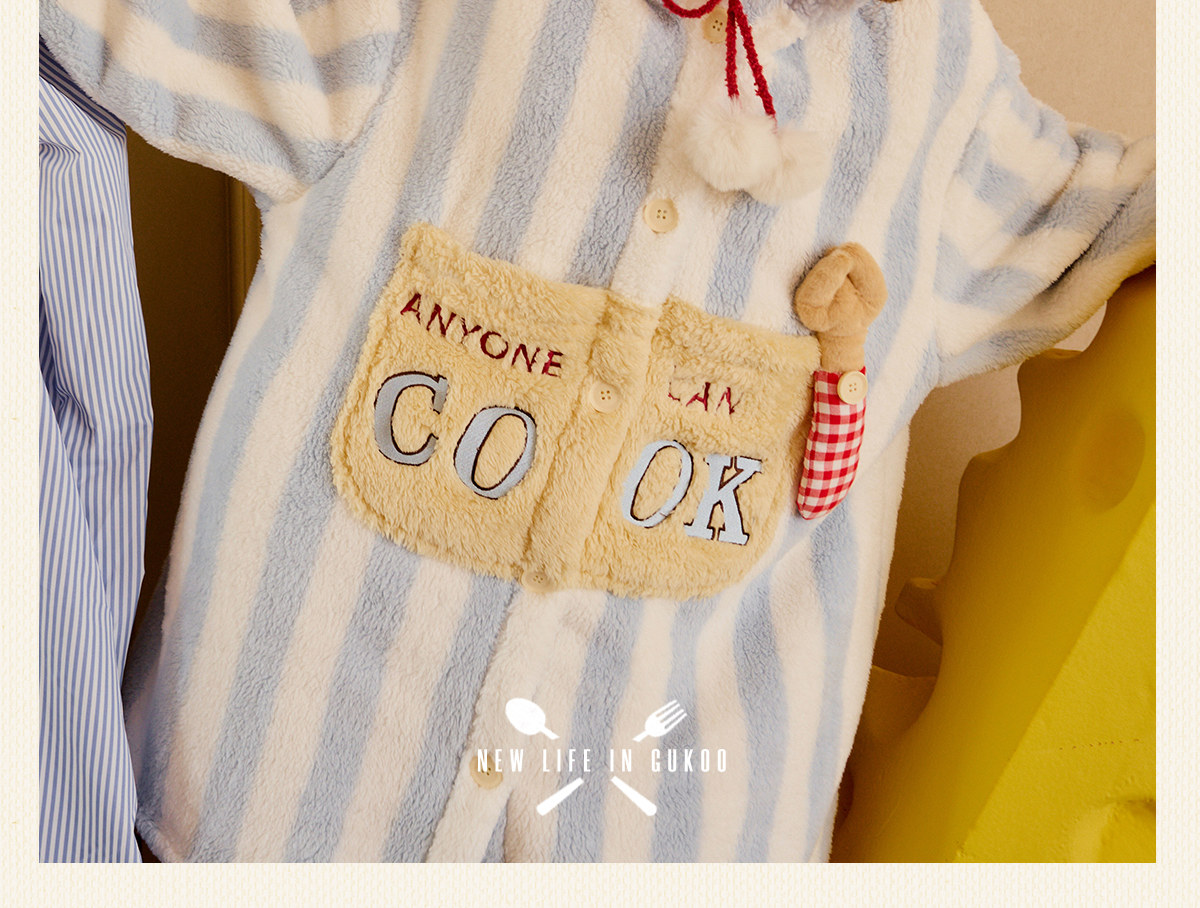 Gukoo/果壳睡衣冬季料理鼠王联名新款珊瑚绒保暖女士家居服套装D