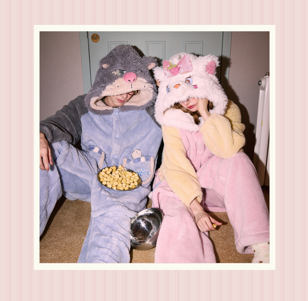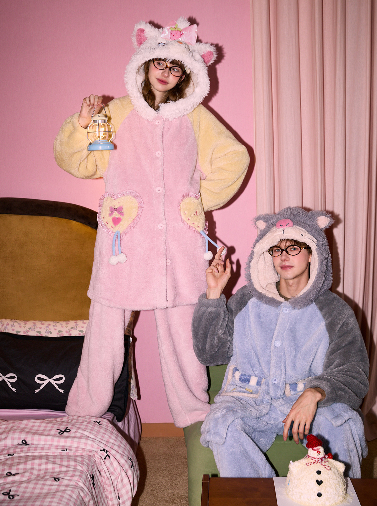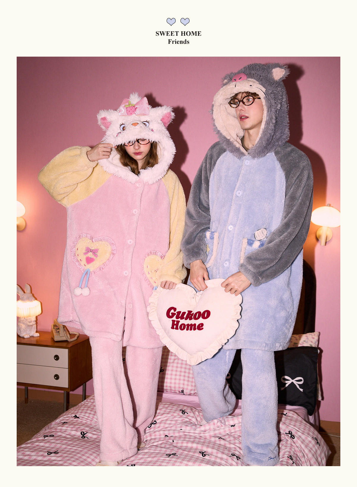 Gukoo/果壳情侣睡衣冬季珊瑚绒保暖新款迪士尼联名男家居服套装D