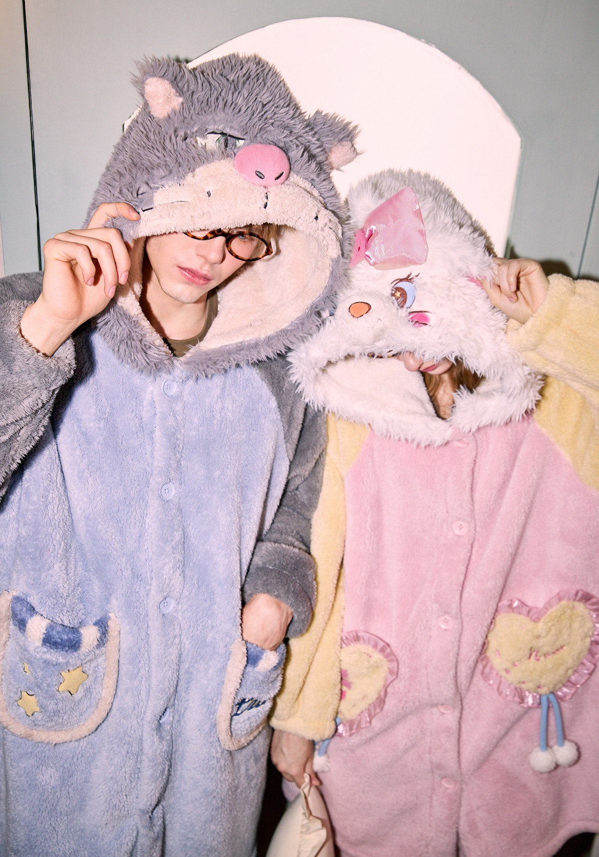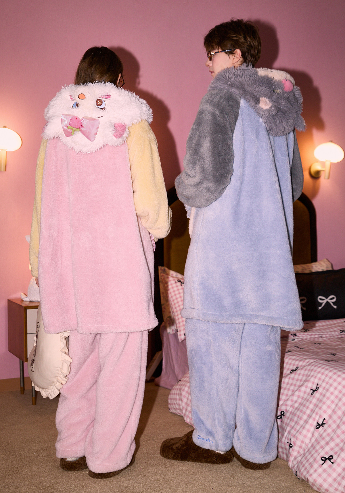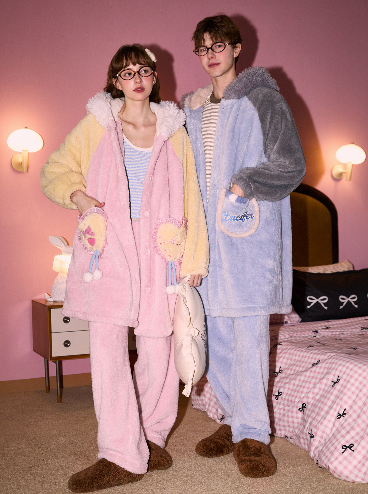 Gukoo/果壳情侣睡衣冬季珊瑚绒保暖新款迪士尼联名男家居服套装D
