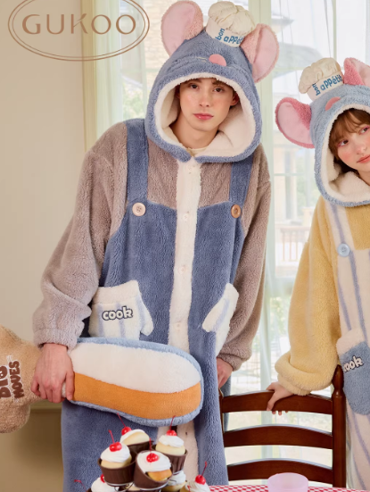 Gukoo/果壳情侣睡袍冬季珊瑚绒保暖新款料理鼠王联名家居服睡袍D