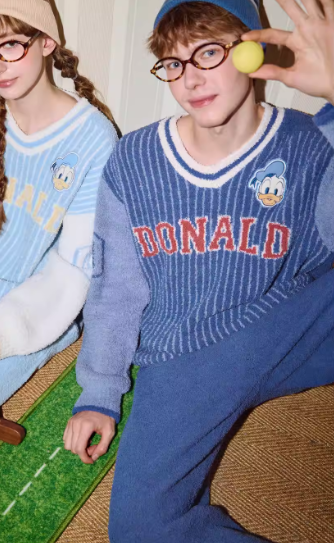 Gukoo/果壳情侣睡衣冬季半边绒保暖新款迪士尼联名女家居服套装D