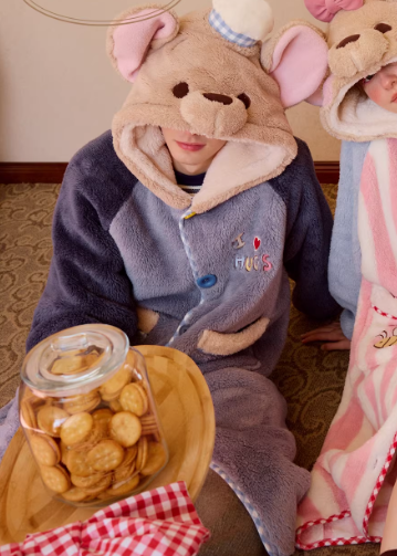 Gukoo/果壳情侣睡袍冬季毛绒保暖新款迪士尼小豆联名女家居服睡袍D