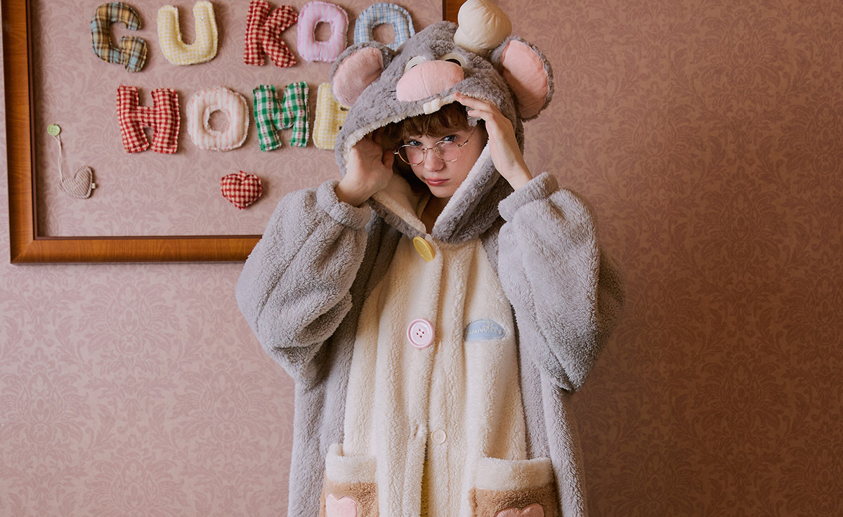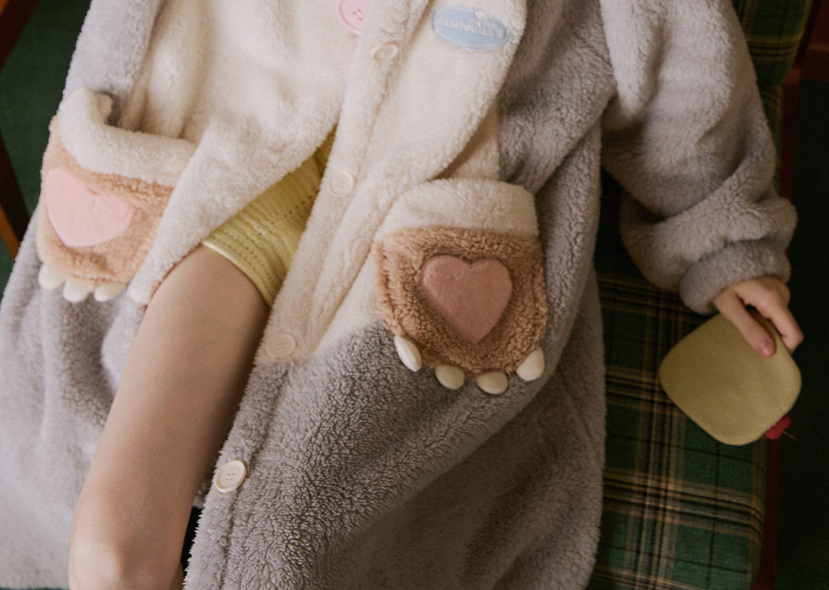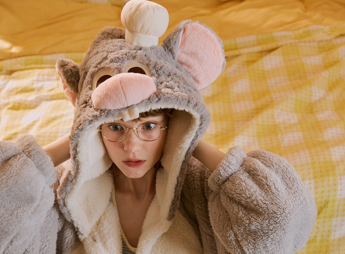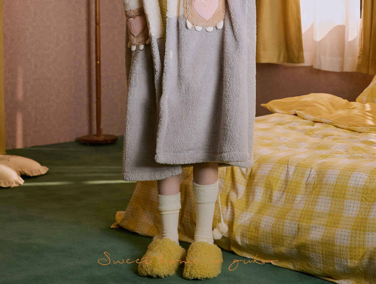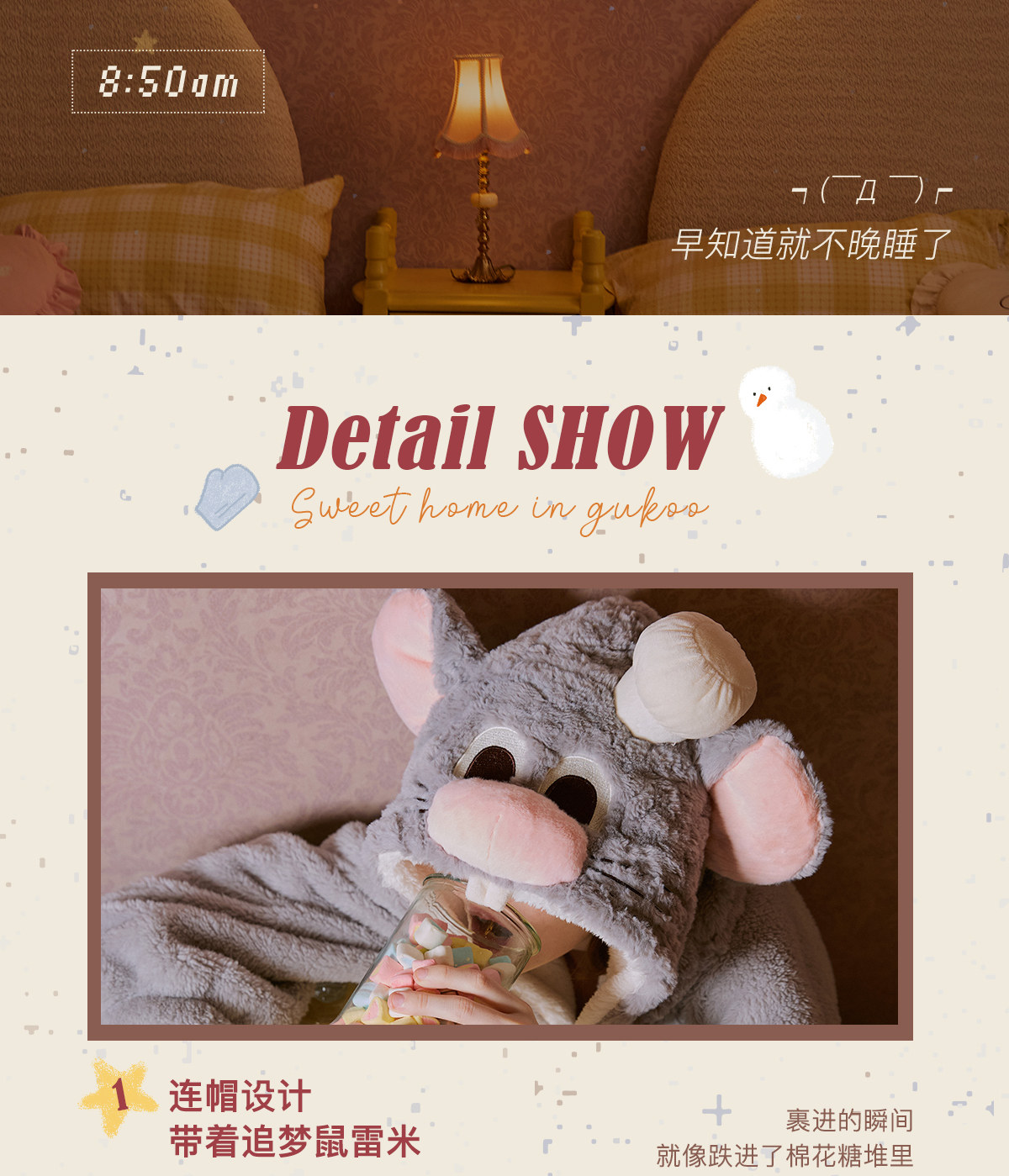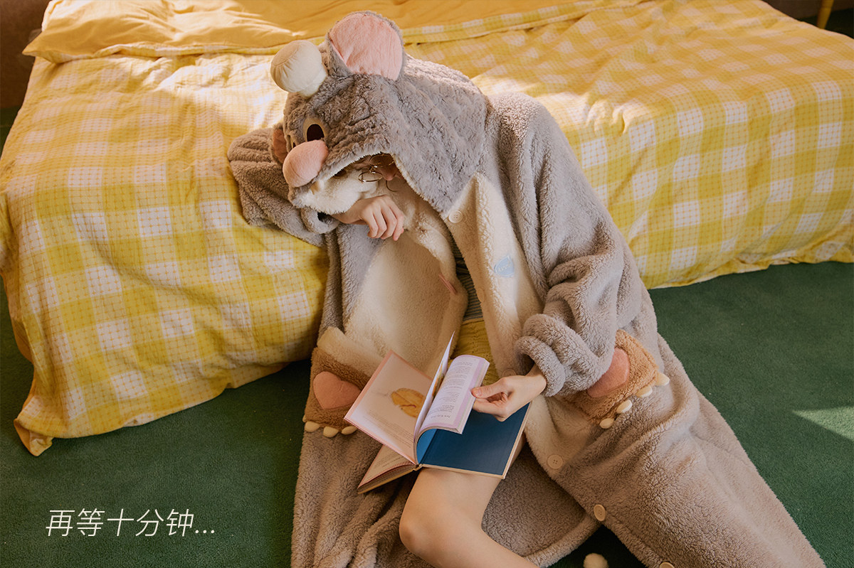 Gukoo/果壳睡袍女冬季毛绒保暖新款料理鼠王联名女士家居服睡袍D