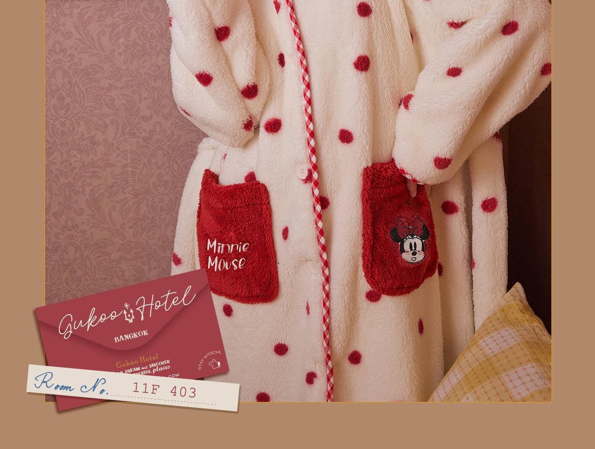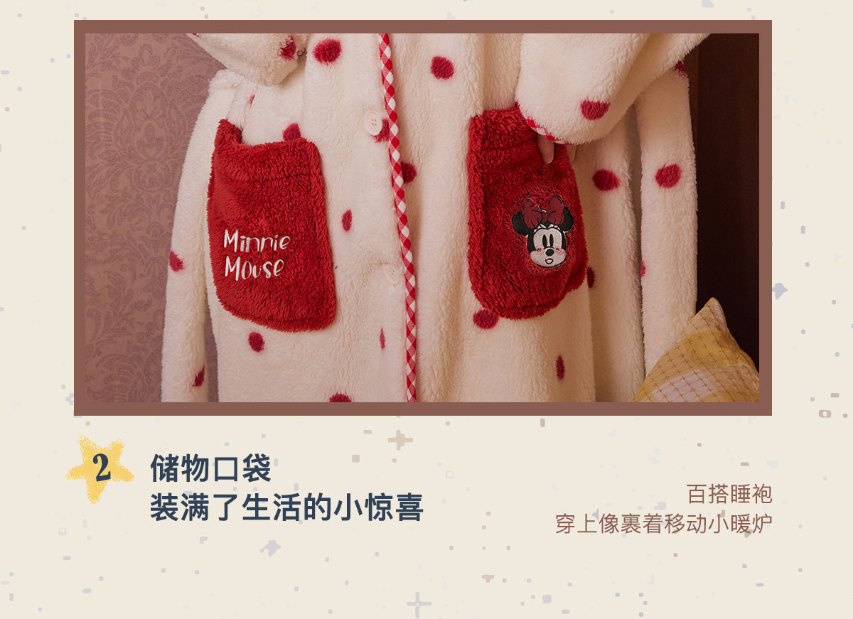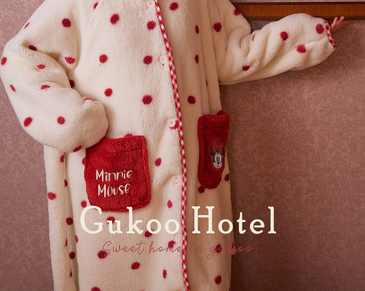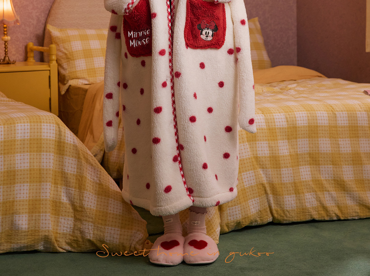 Gukoo/果壳睡袍女冬季珊瑚绒保暖新款迪士尼联名波点家居服睡袍D