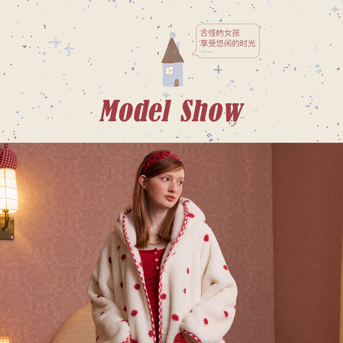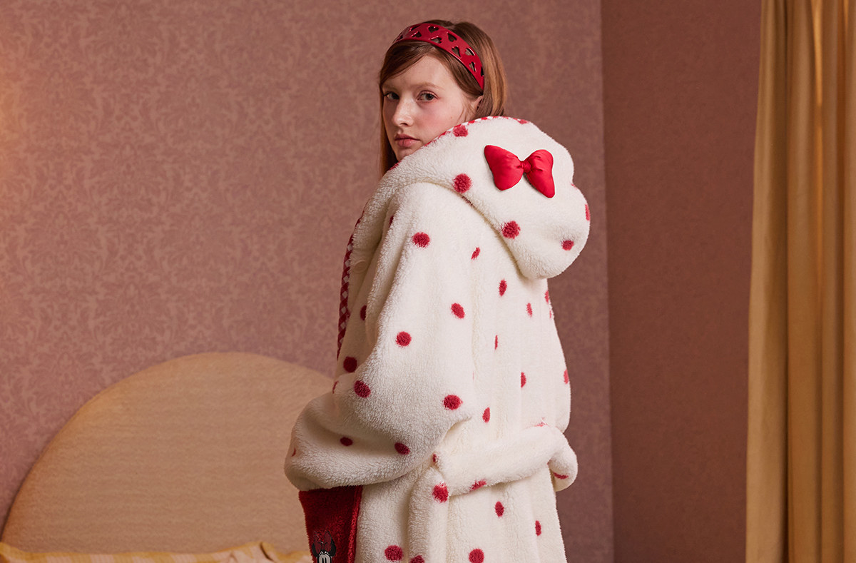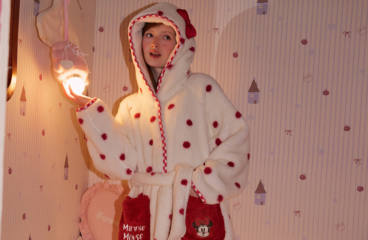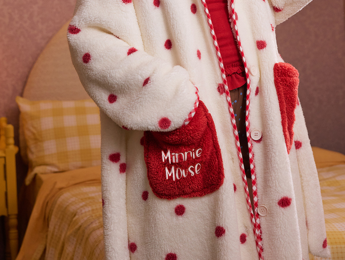 Gukoo/果壳睡袍女冬季珊瑚绒保暖新款迪士尼联名波点家居服睡袍D