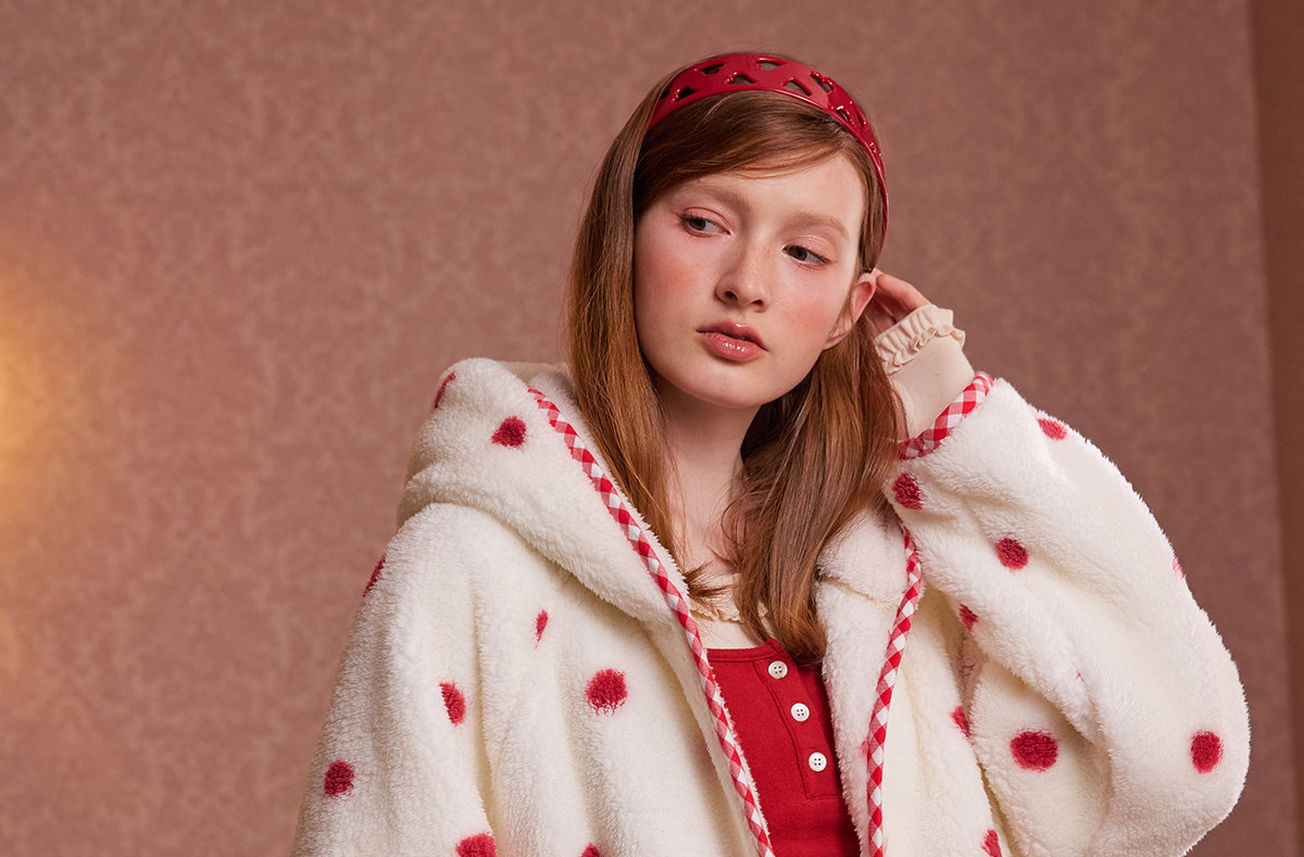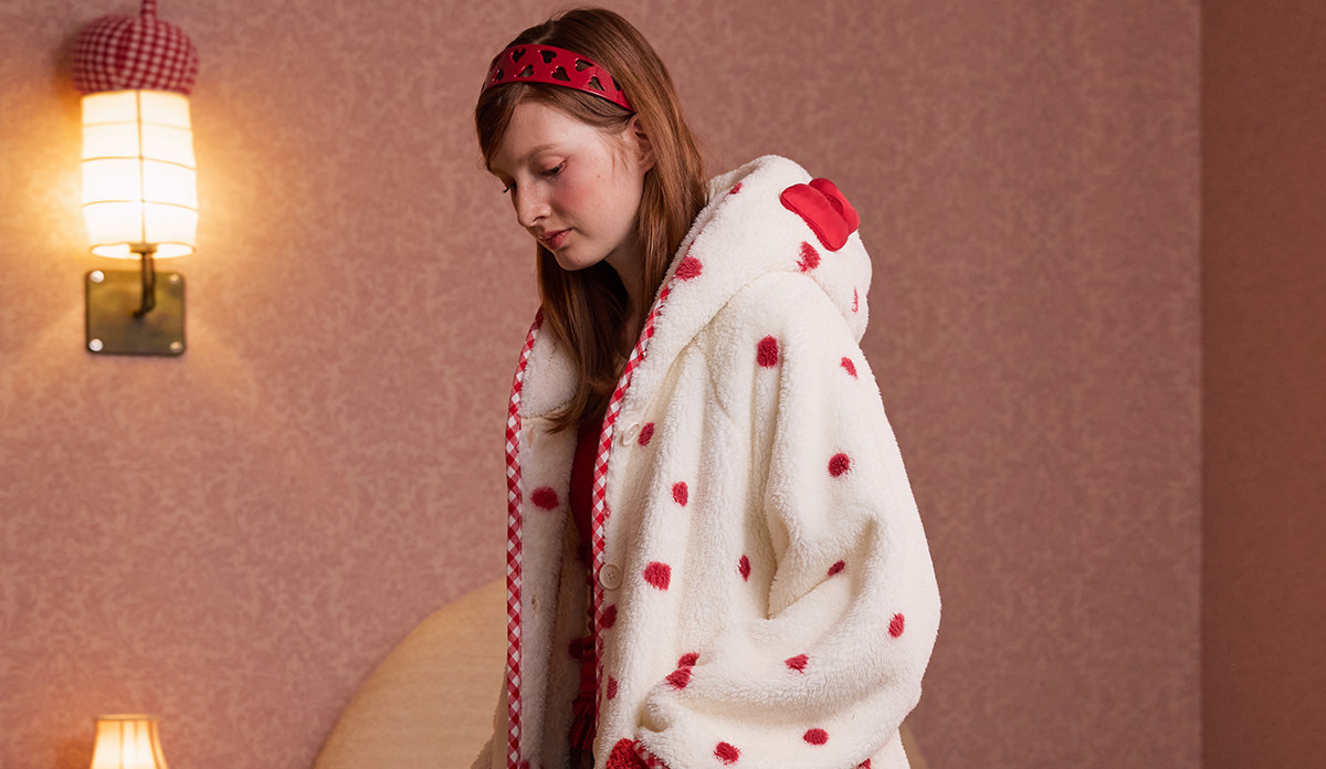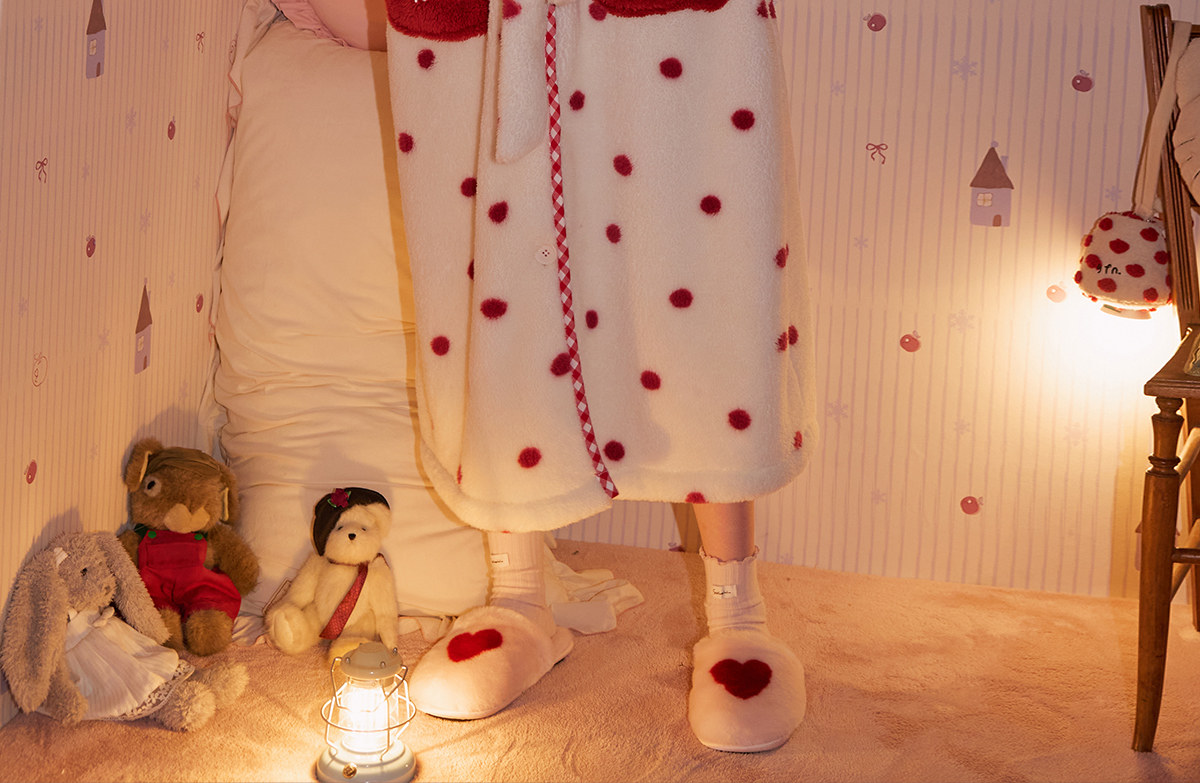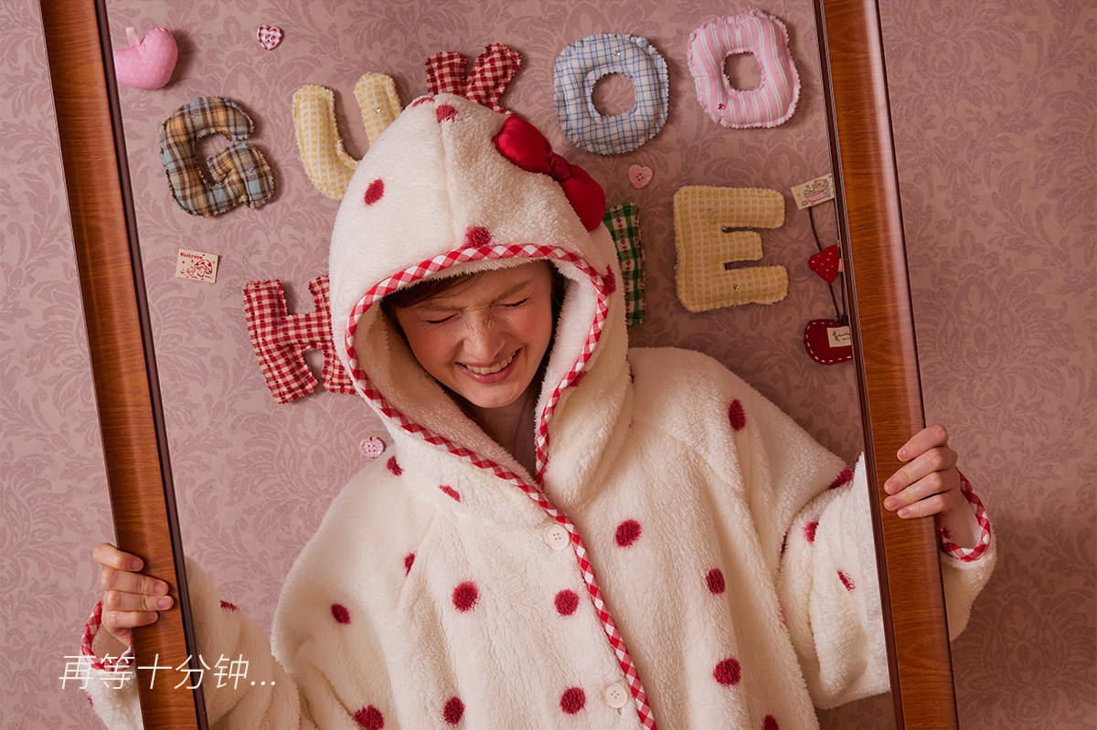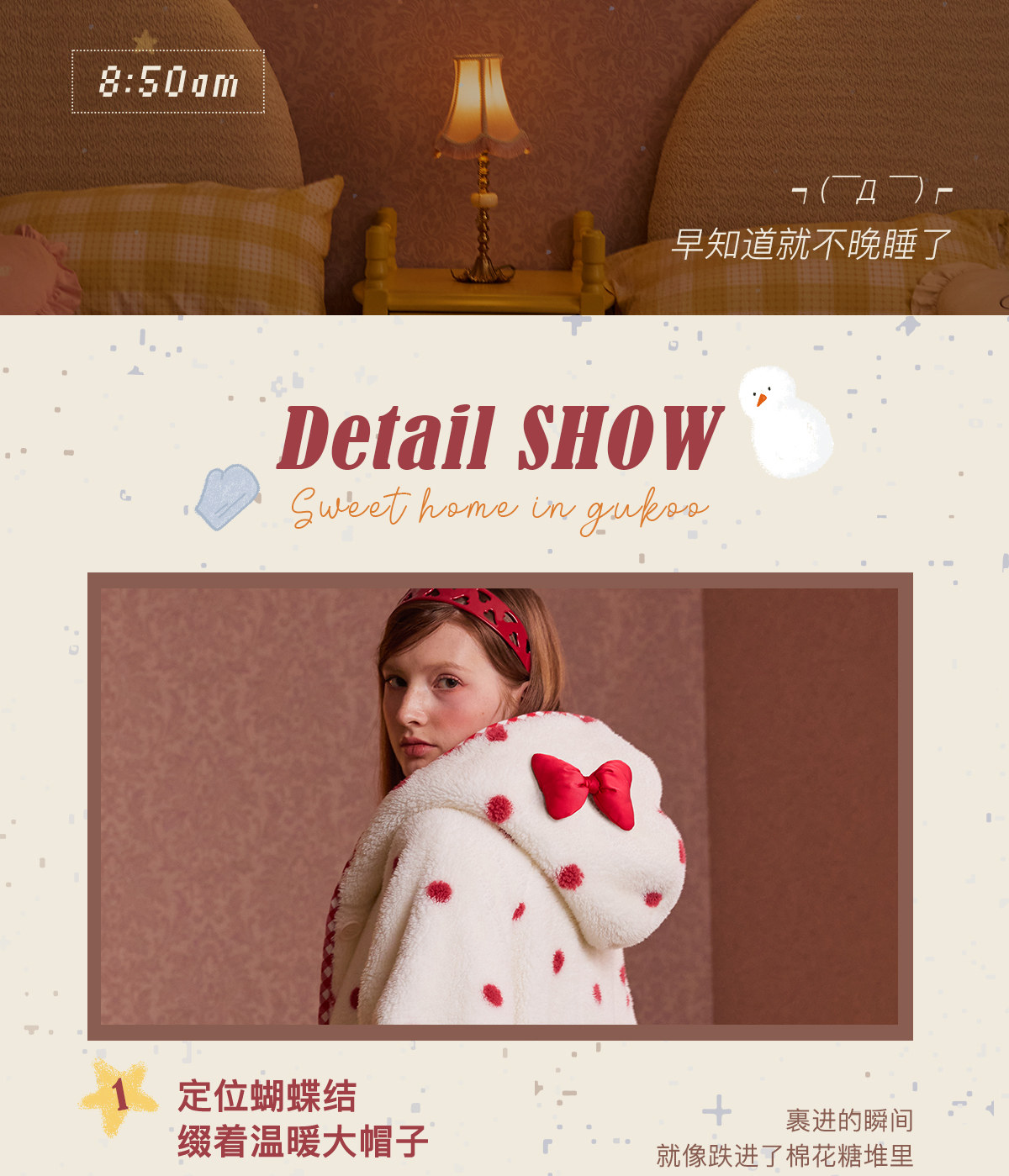 Gukoo/果壳睡袍女冬季珊瑚绒保暖新款迪士尼联名波点家居服睡袍D