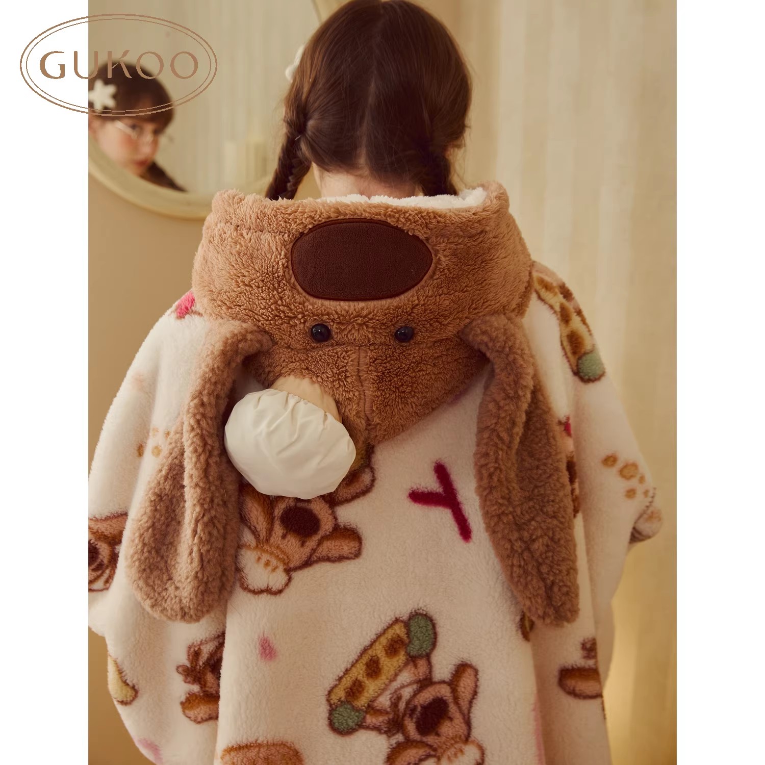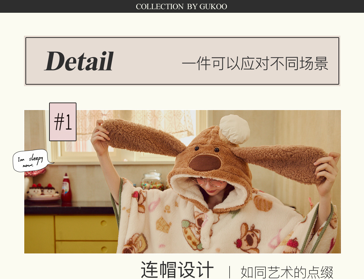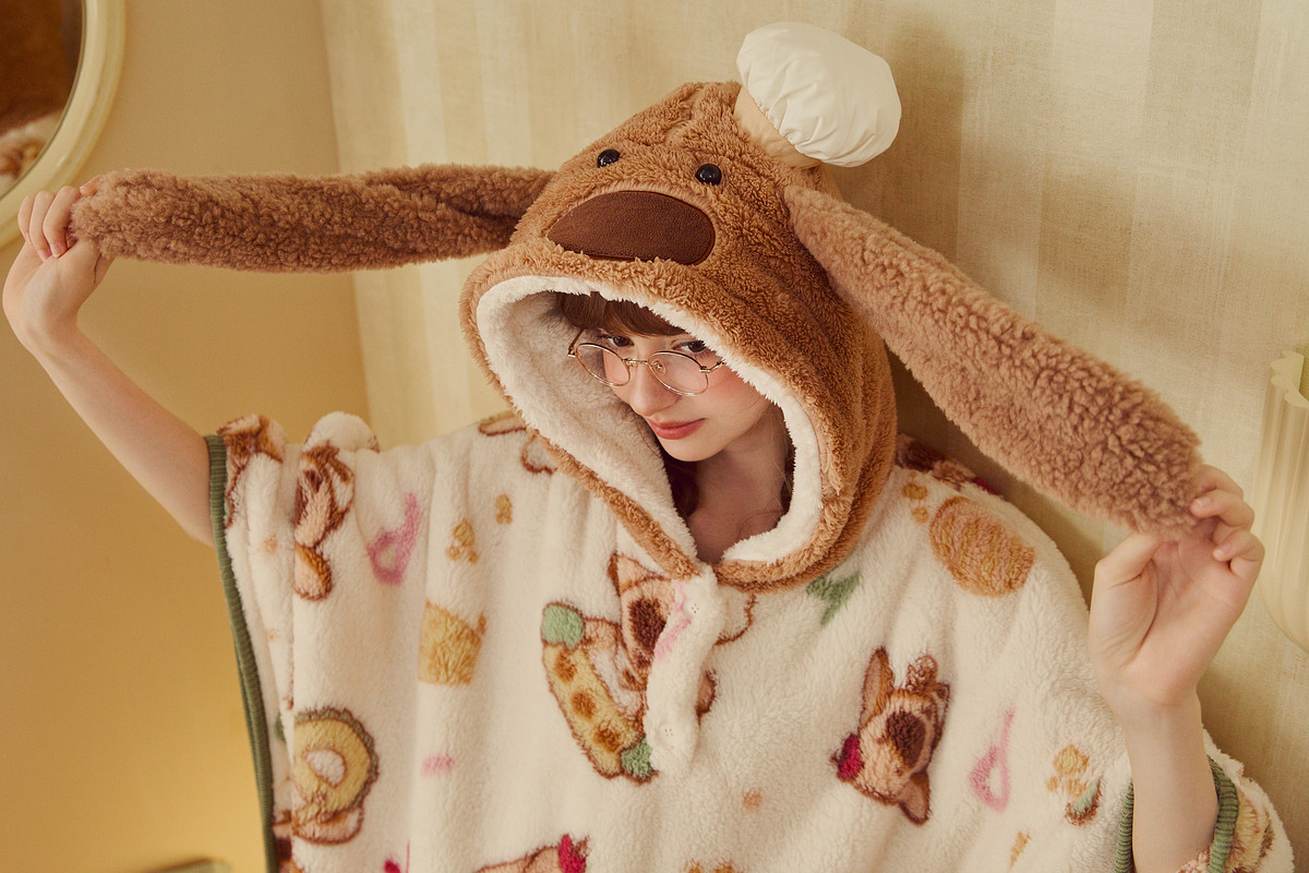 Gukoo/果壳女士睡袍冬季珊瑚绒保暖新款可爱大鼻子狗家居服睡袍D