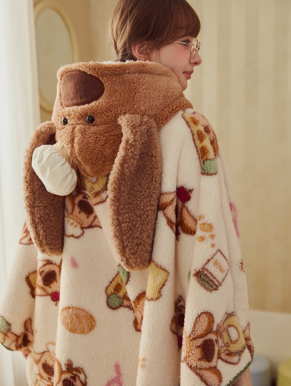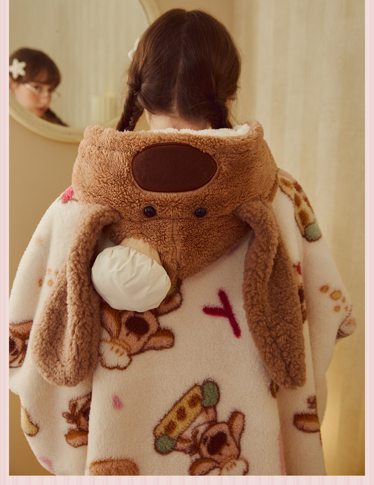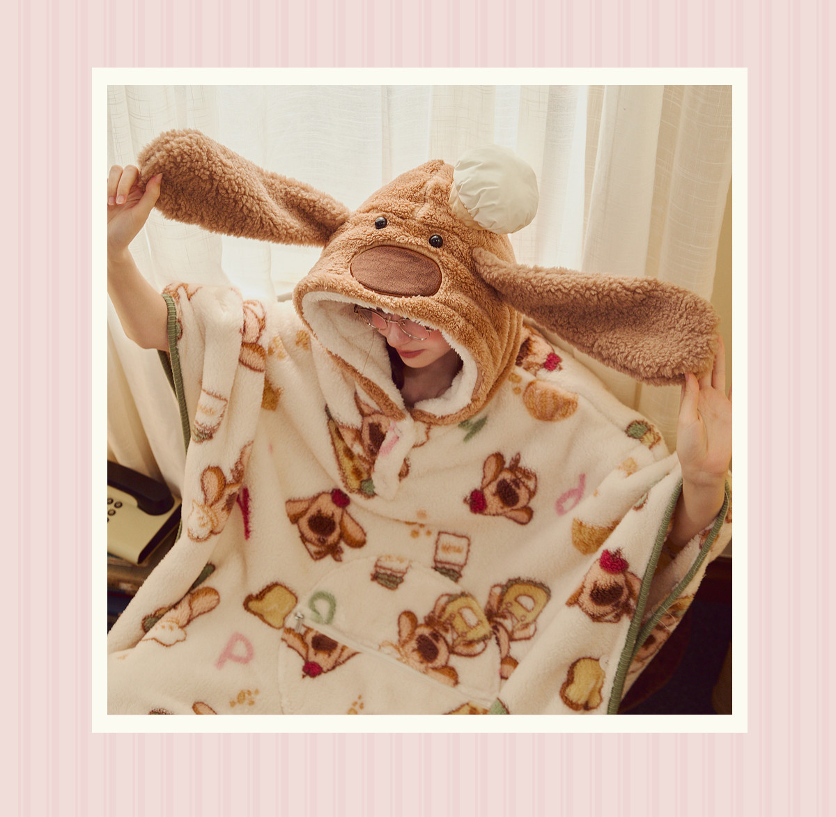 Gukoo/果壳女士睡袍冬季珊瑚绒保暖新款可爱大鼻子狗家居服睡袍D