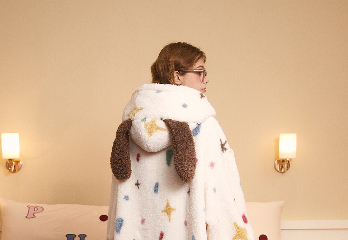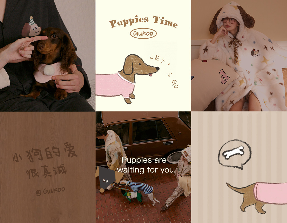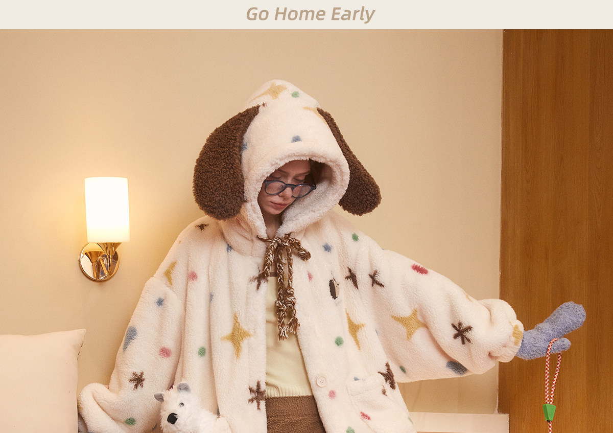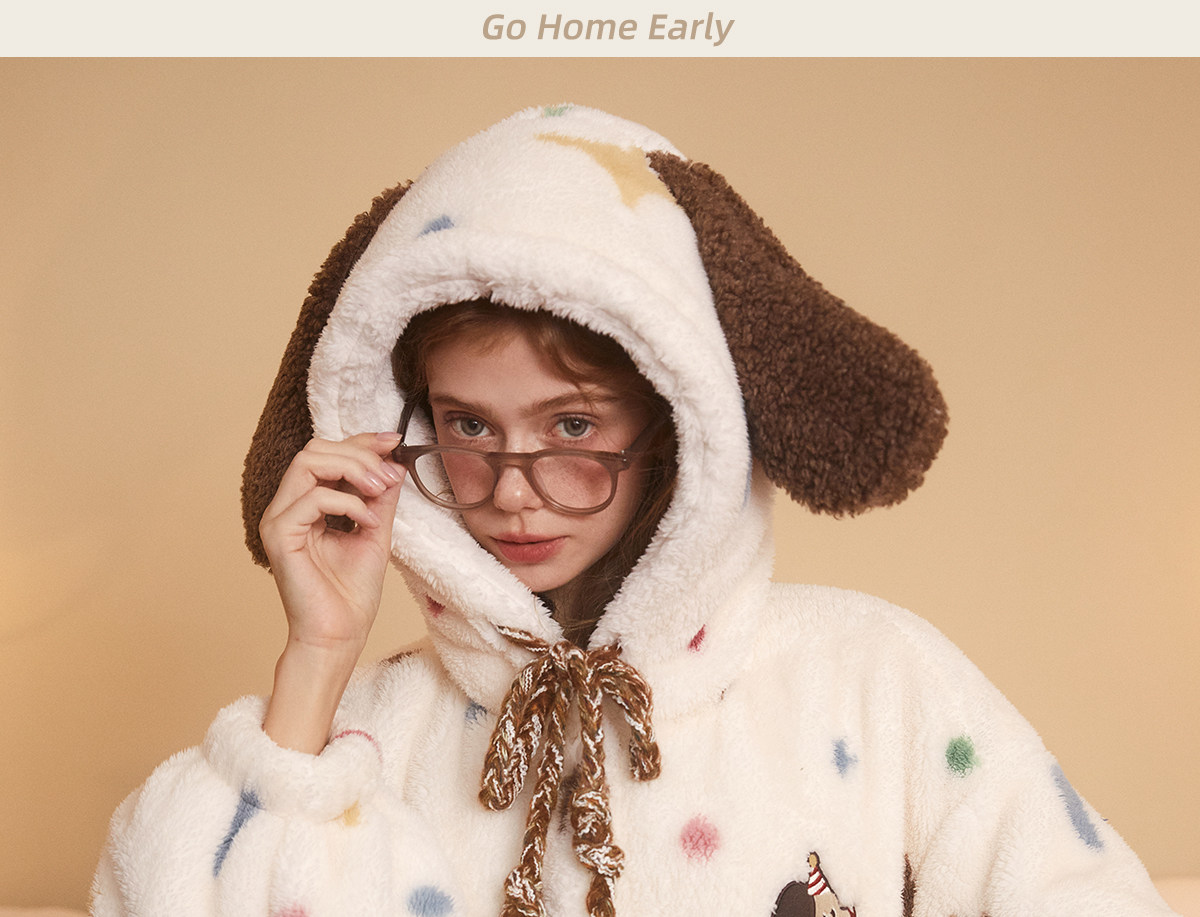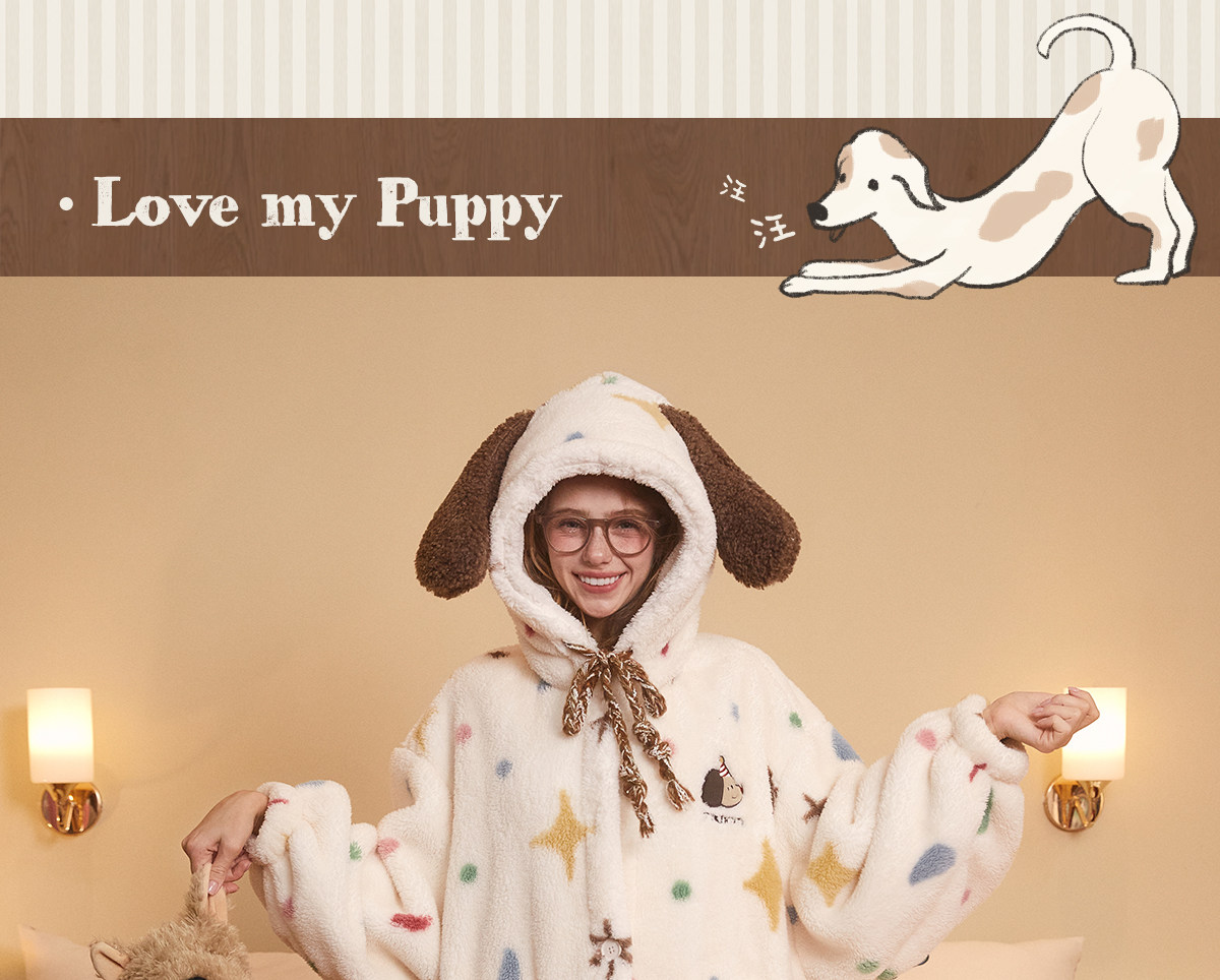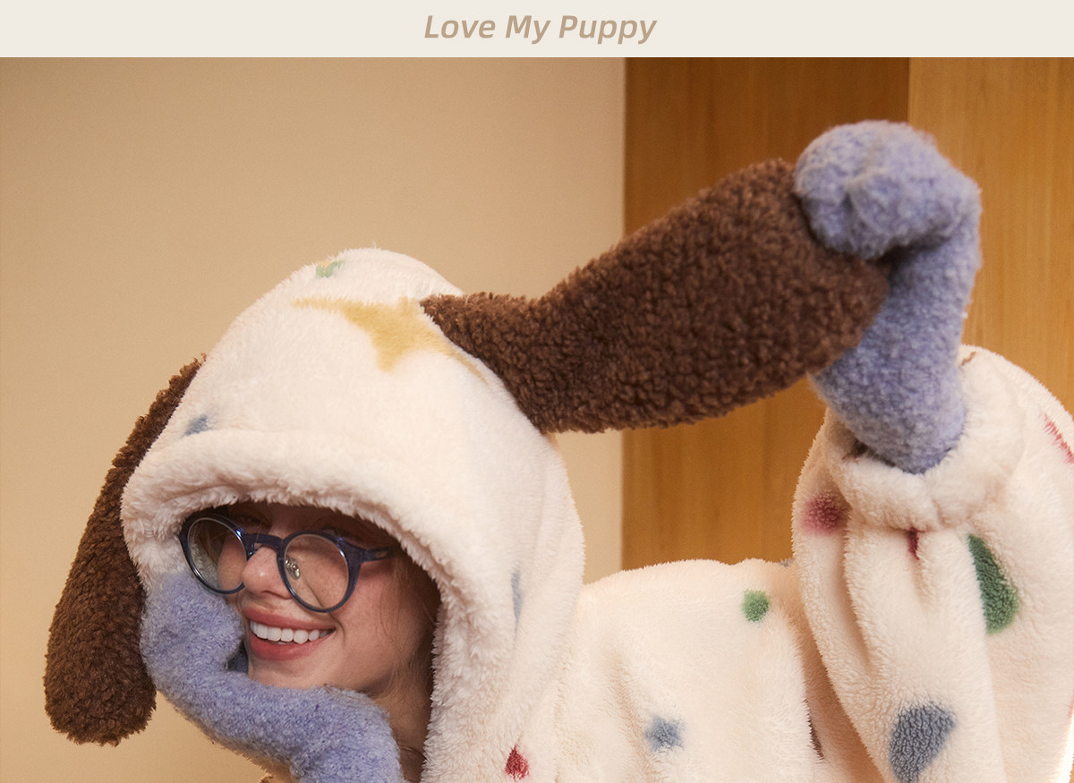 Gukoo/果壳睡袍女冬季轰轰小狗新款满印可爱薄绒女士家居服睡袍D