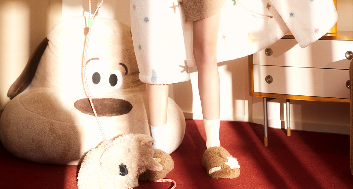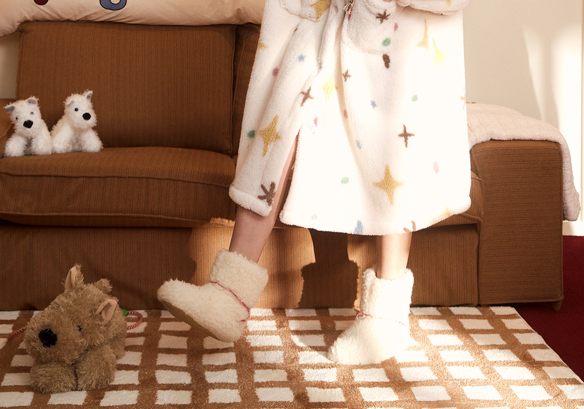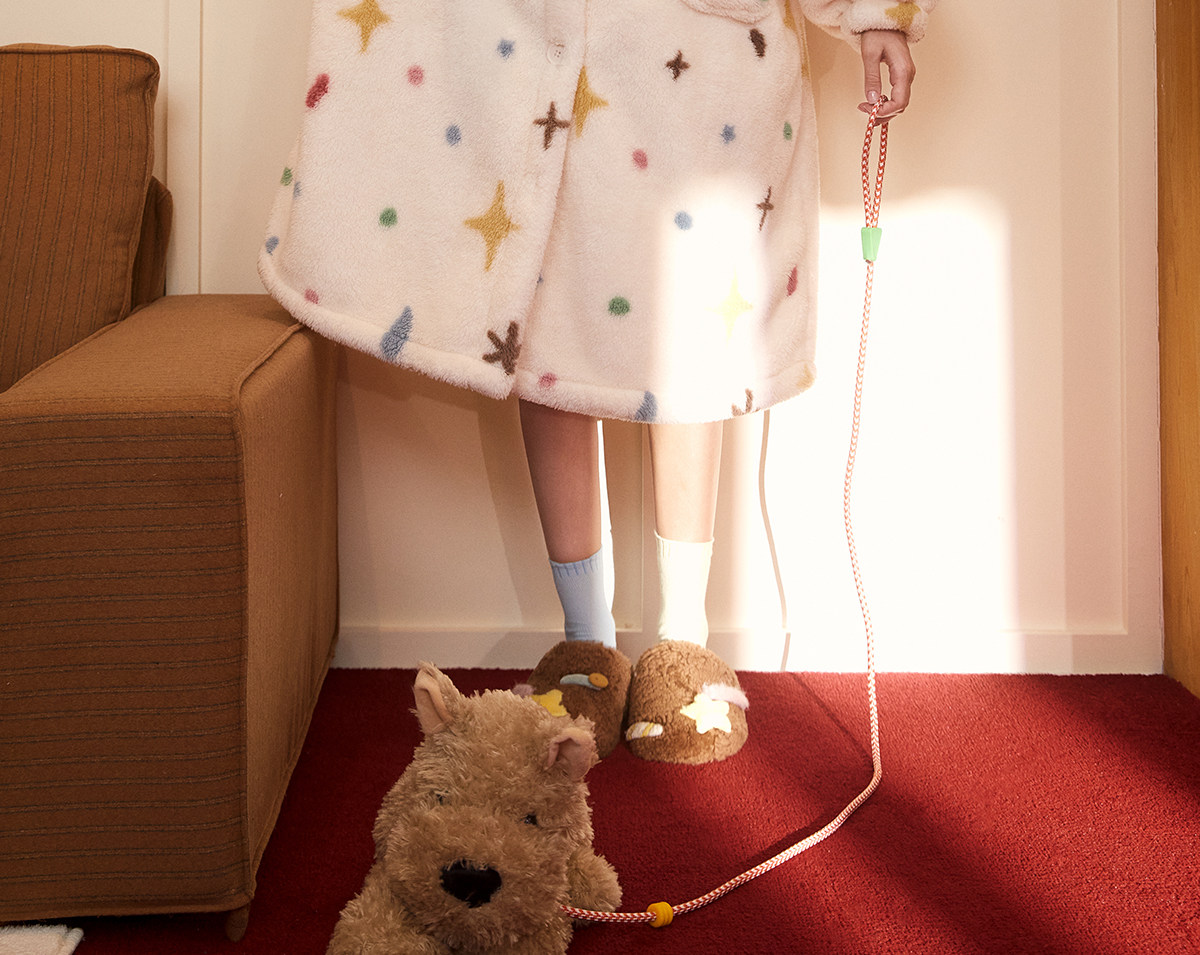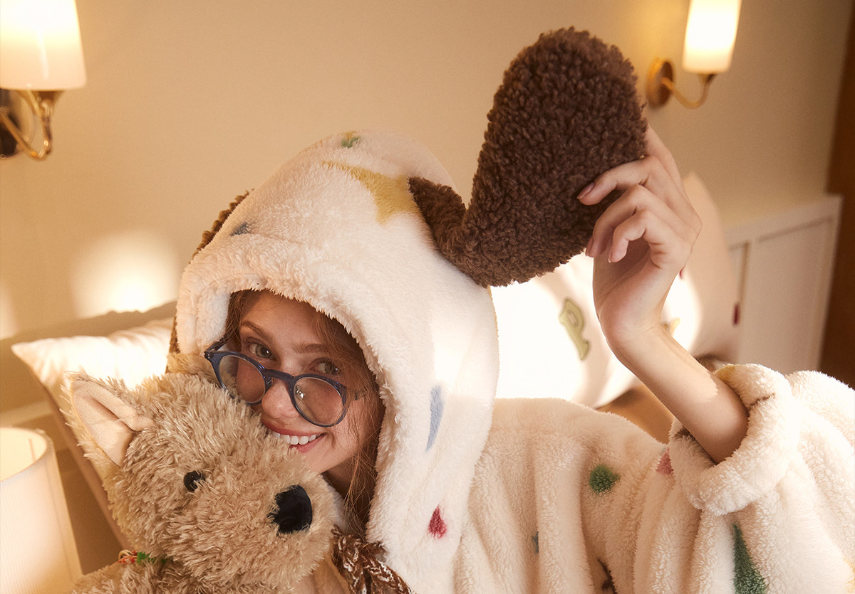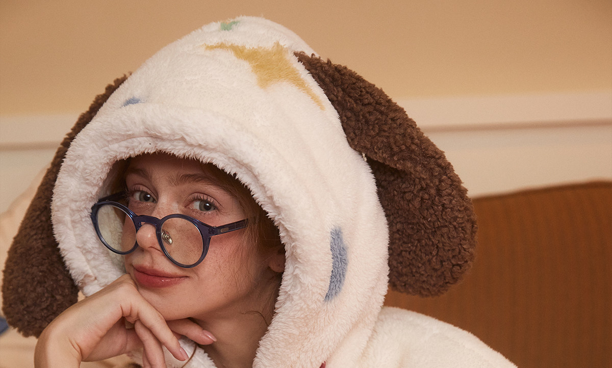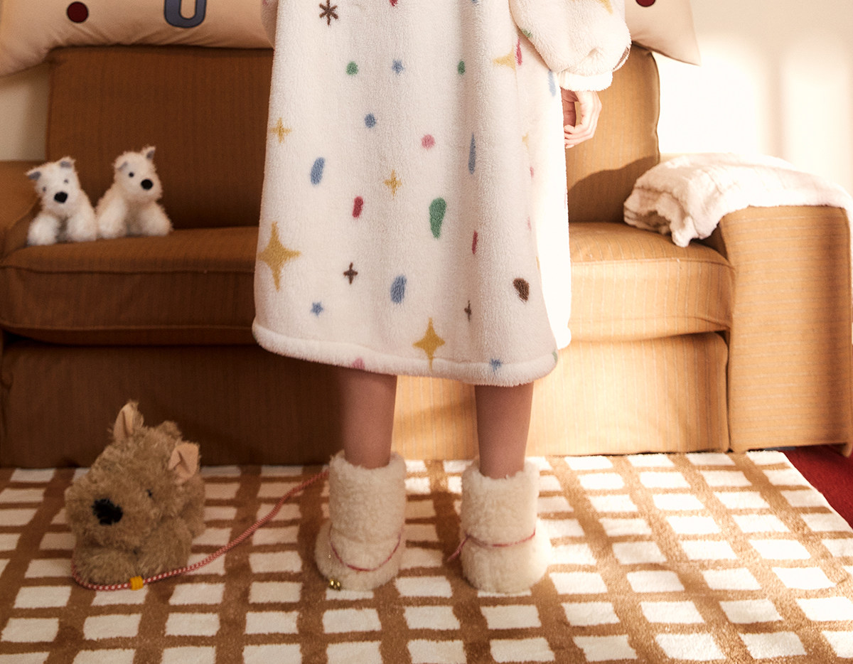 Gukoo/果壳睡袍女冬季轰轰小狗新款满印可爱薄绒女士家居服睡袍D
