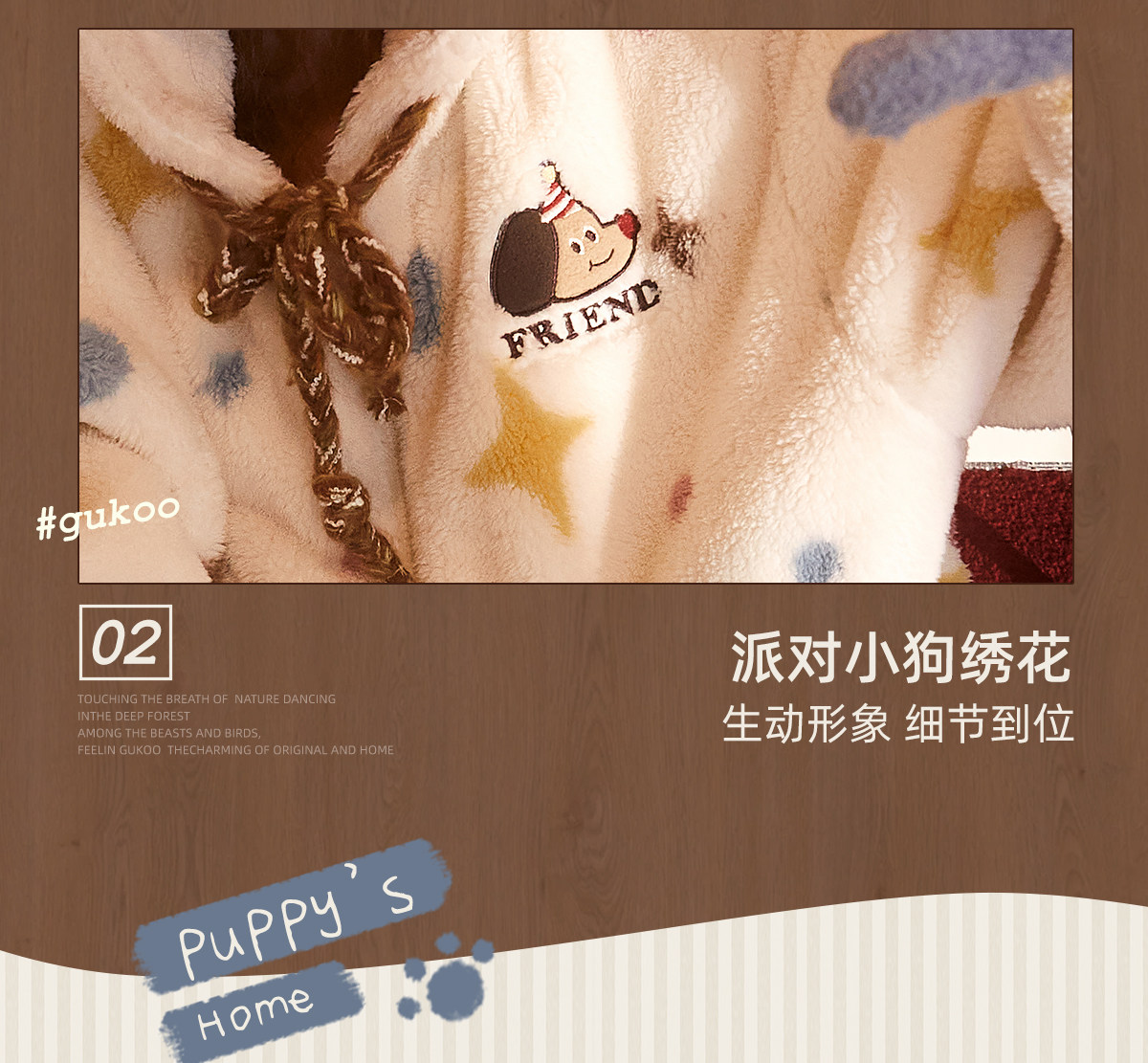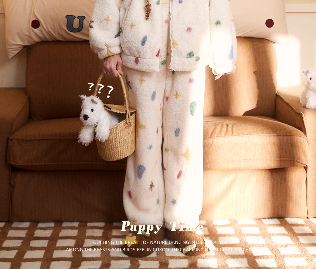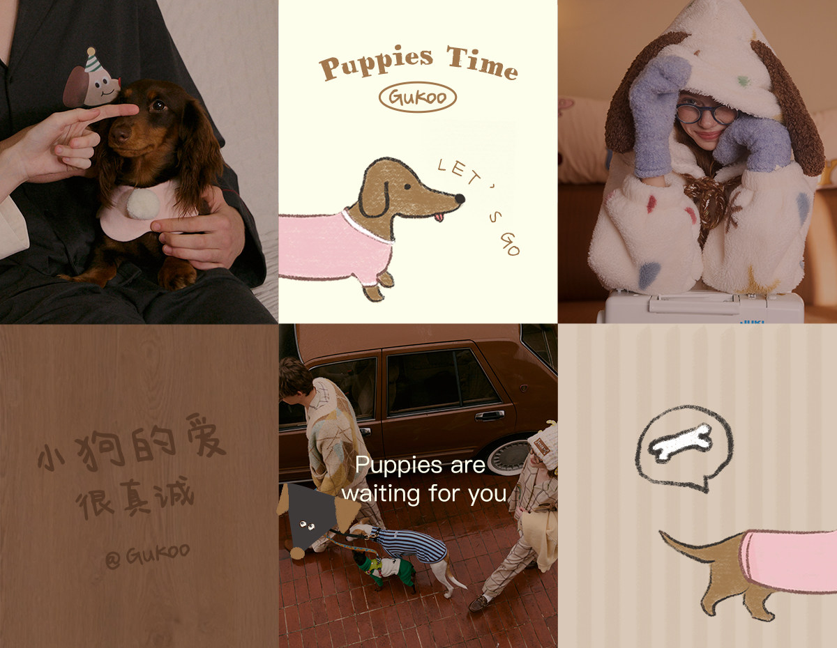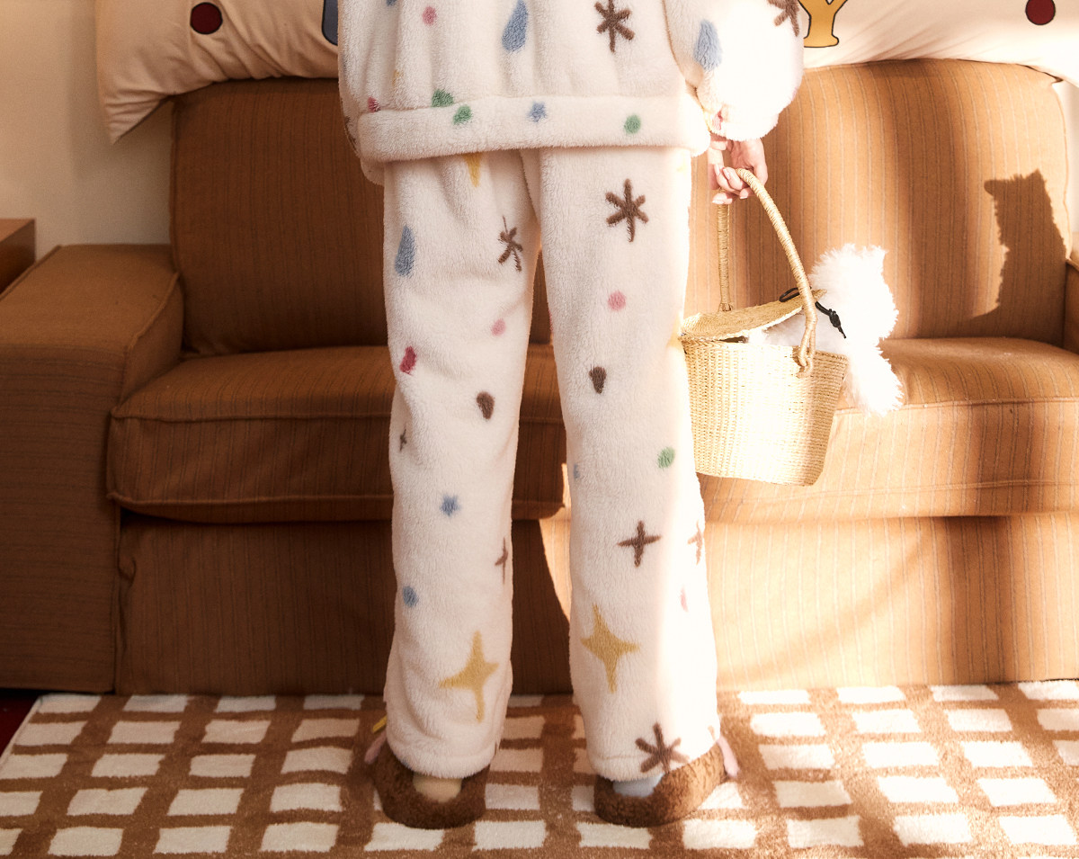 Gukoo/果壳睡衣女冬季轰轰小狗新款可爱毛绒薄绒女士家居服套装D