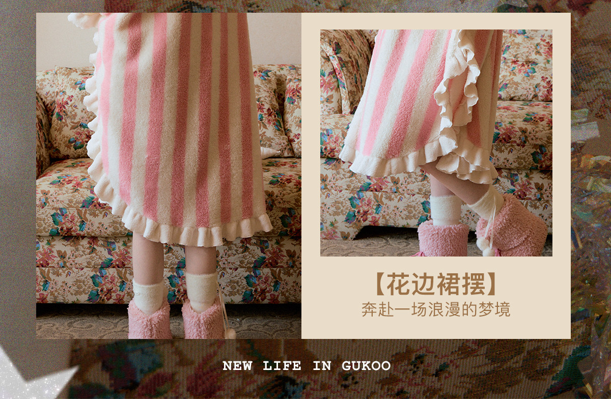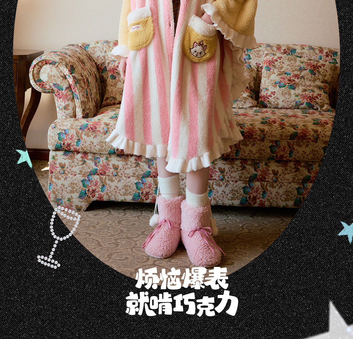 Gukoo/果壳睡袍女冬季迪士尼联名新款毛绒保暖女士家居服睡袍D