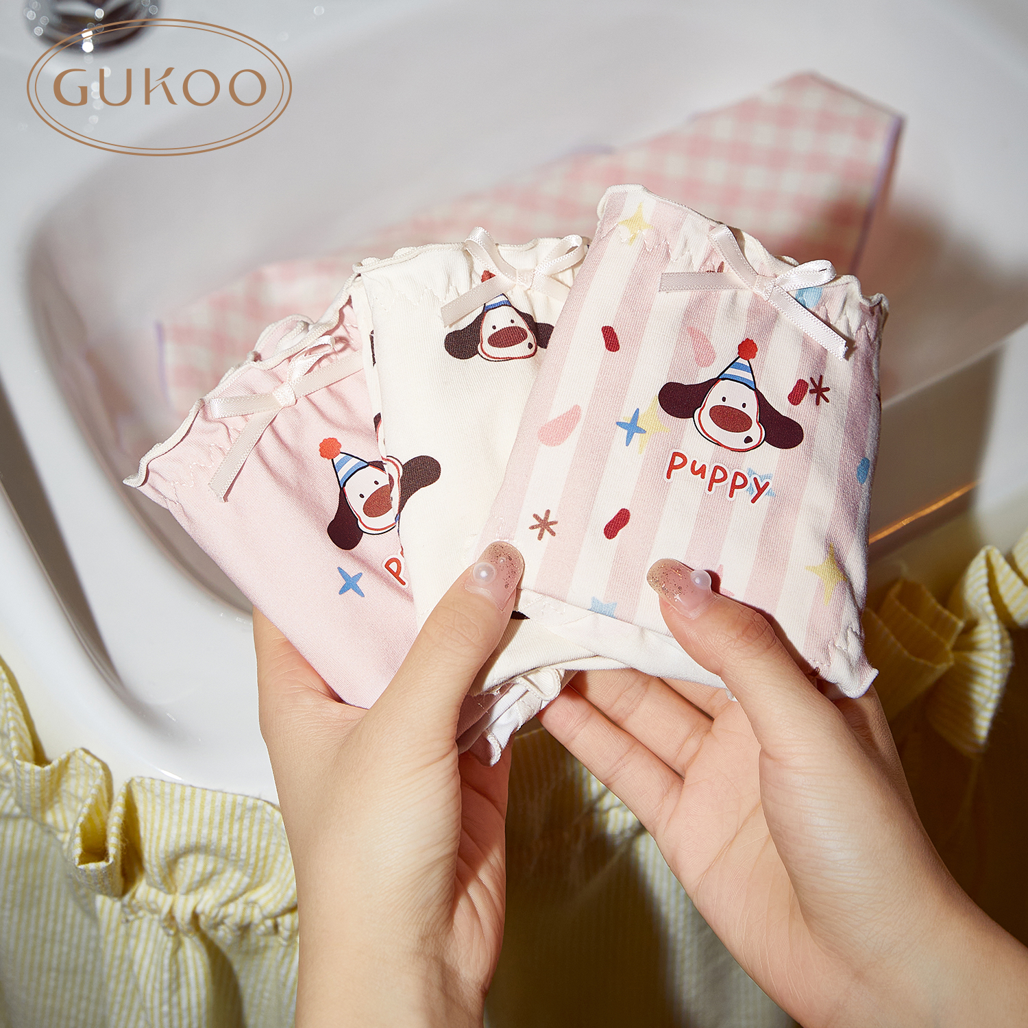 Gukoo/果壳内裤女春夏轰轰小狗印花三角裤新款抗菌纯棉裆女士内裤