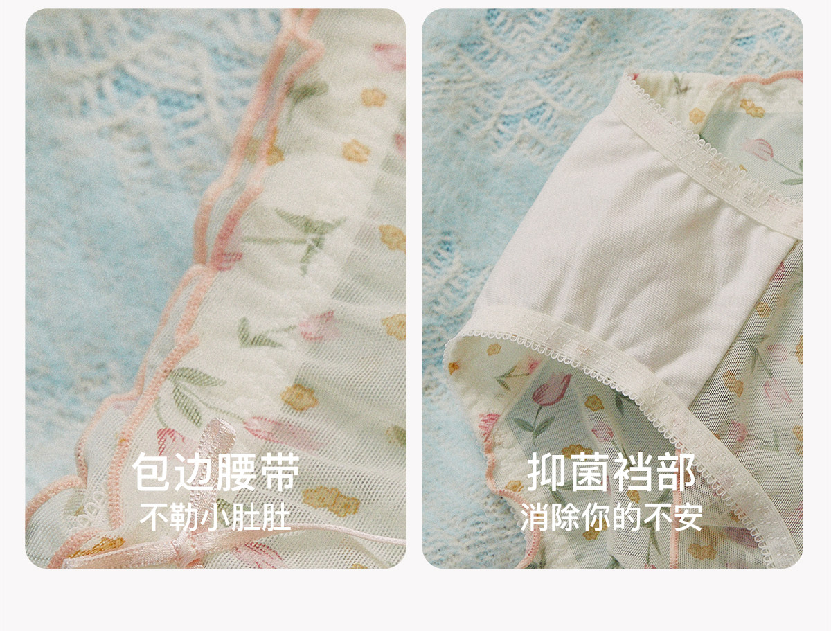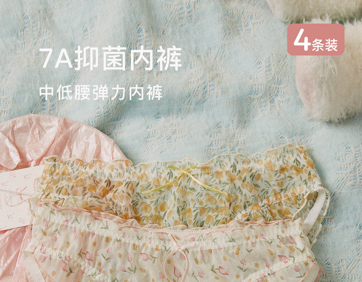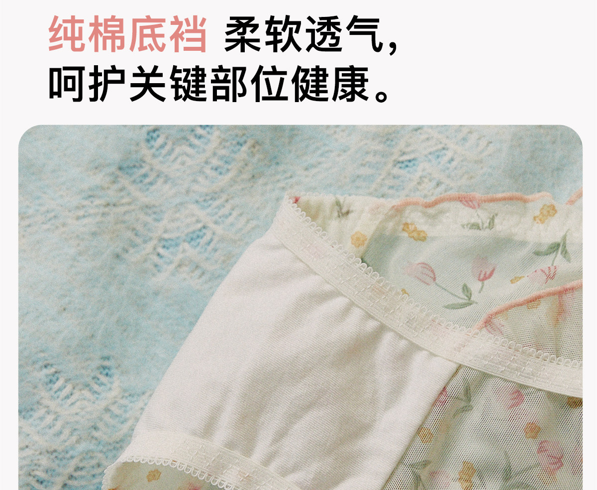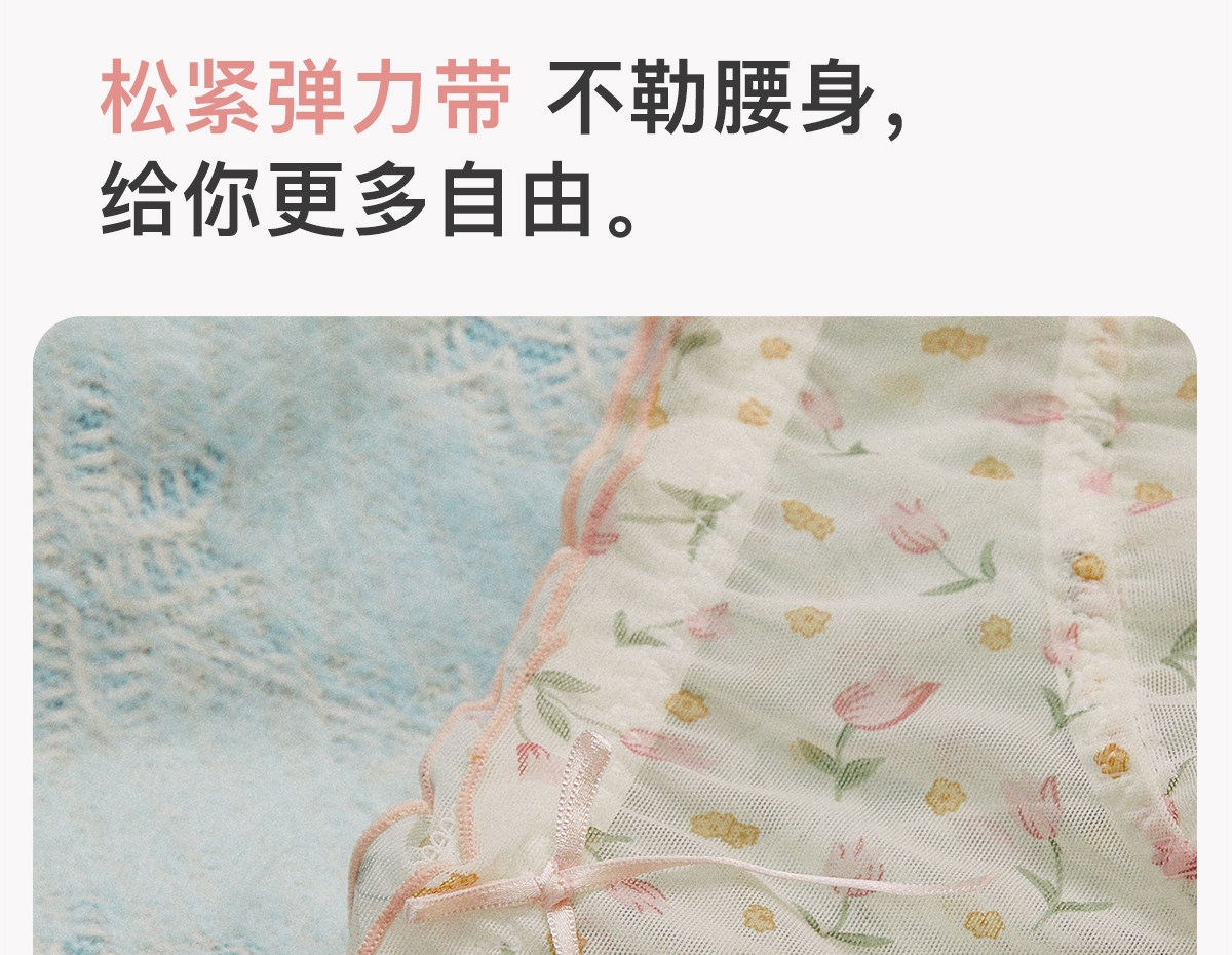 Gukoo/果壳内裤女春夏满印新款网纱抗菌纯棉裆女士内裤组合