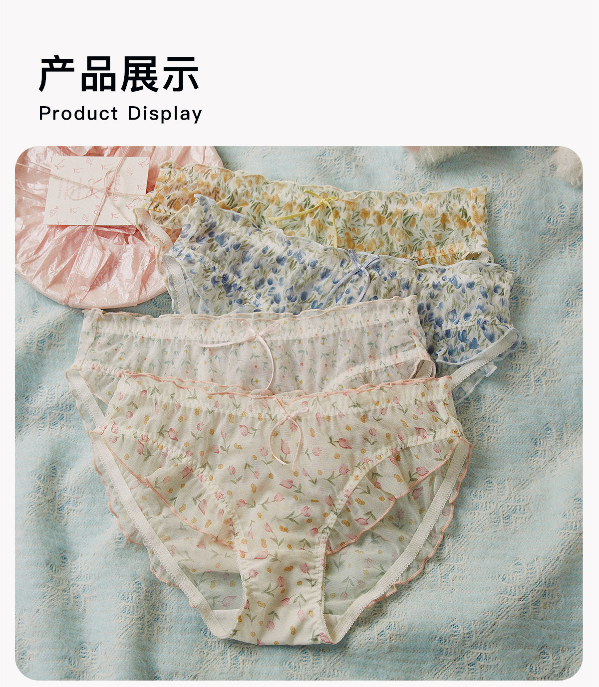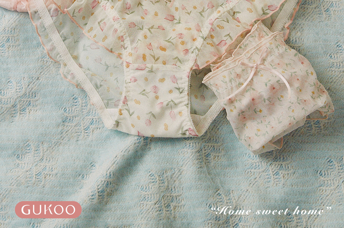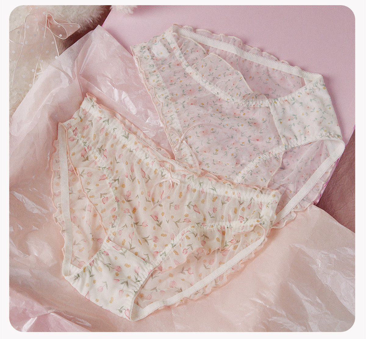 Gukoo/果壳内裤女春夏满印新款网纱抗菌纯棉裆女士内裤组合