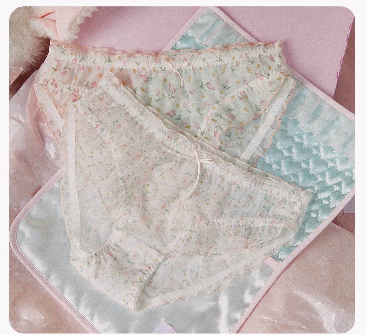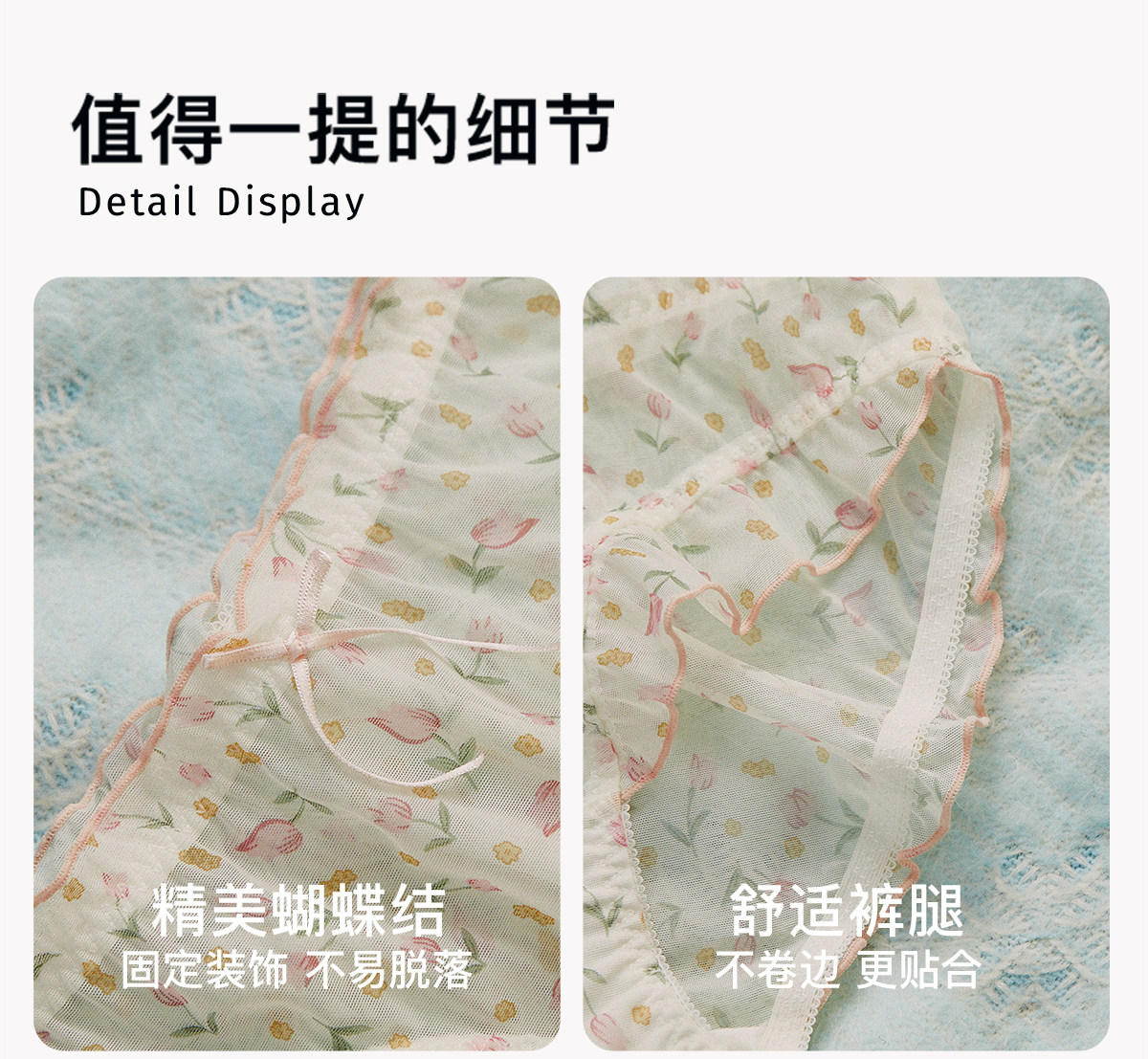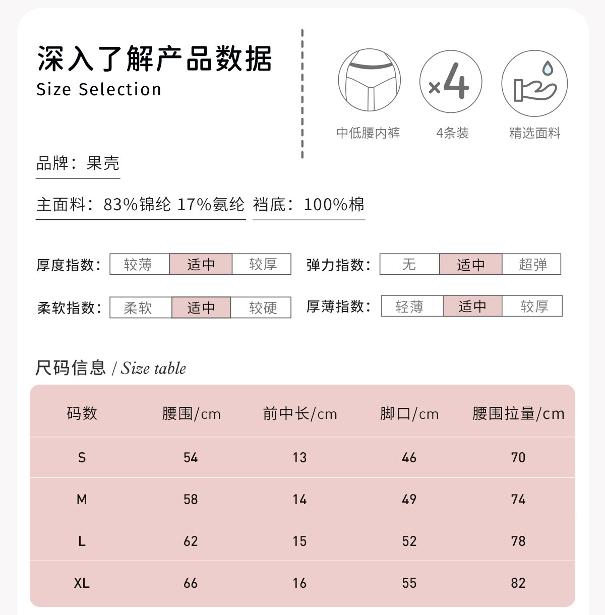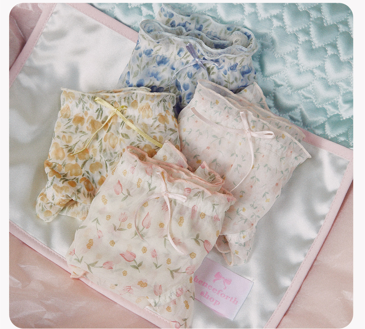 Gukoo/果壳内裤女春夏满印新款网纱抗菌纯棉裆女士内裤组合