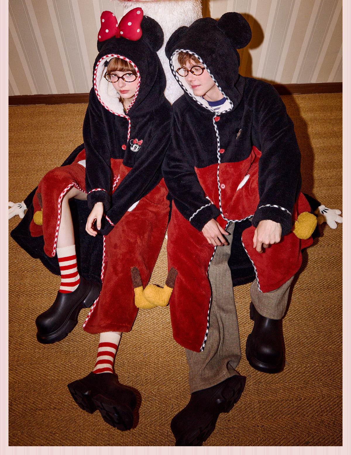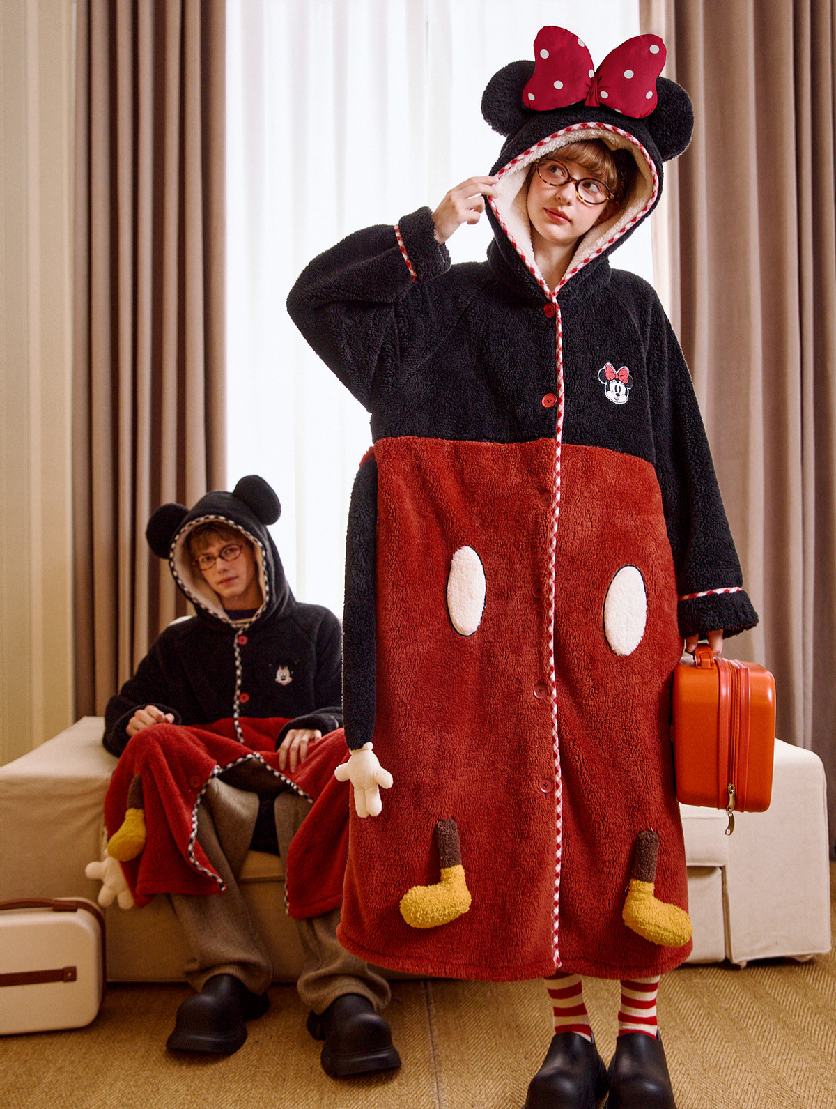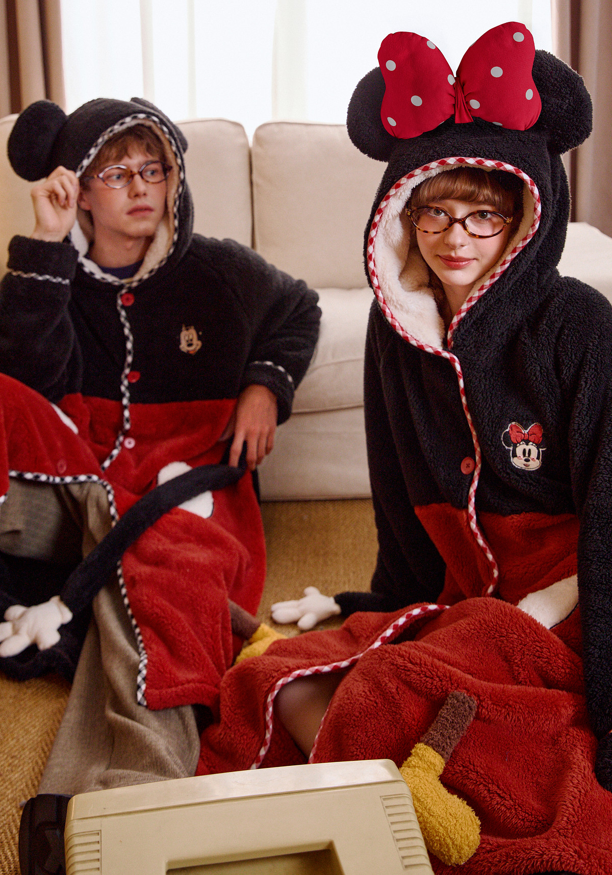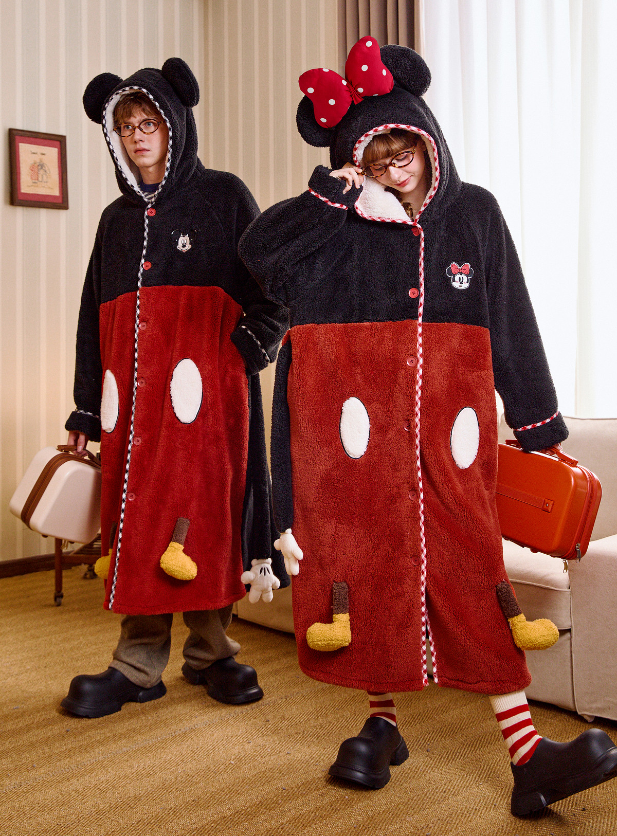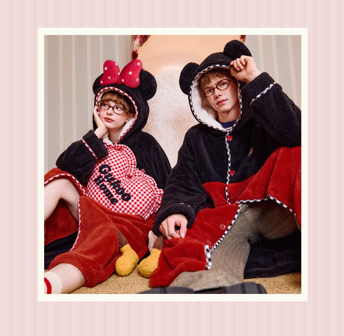 Gukoo/果壳情侣睡袍冬迪士尼联名新款红睡衣本命年保暖男家居服D