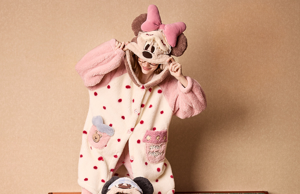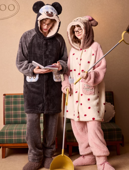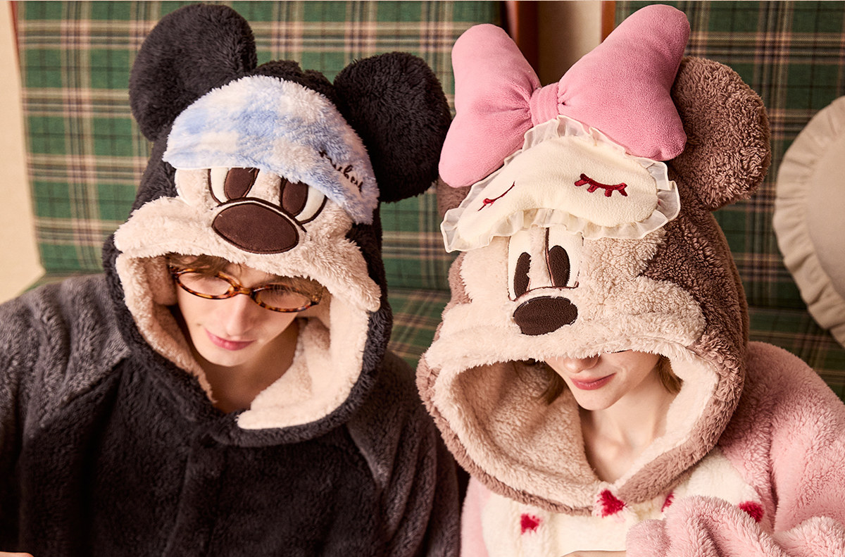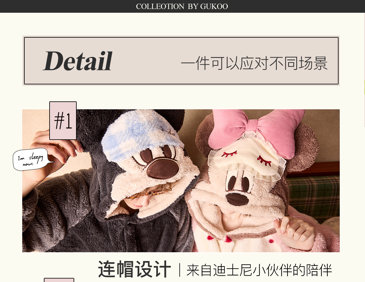 Gukoo/果壳情侣睡衣冬季珊瑚绒保暖新款迪士尼联名女家居服套装D