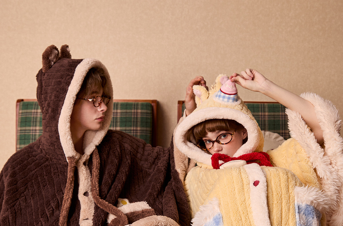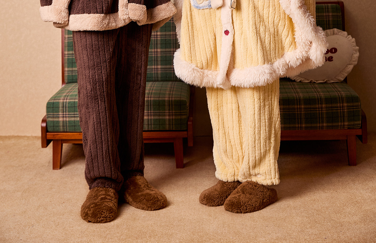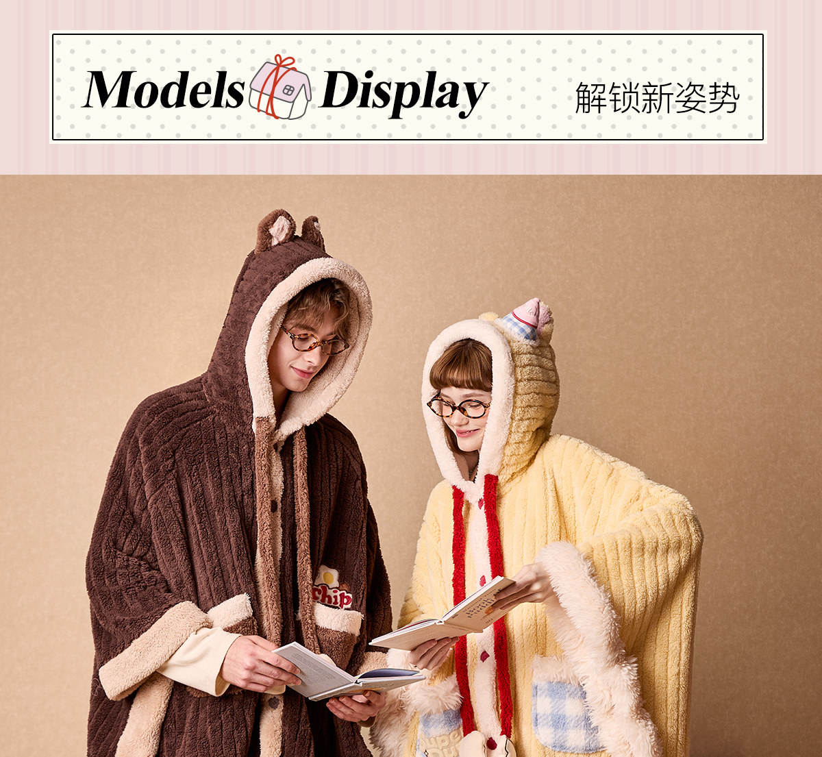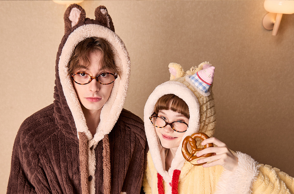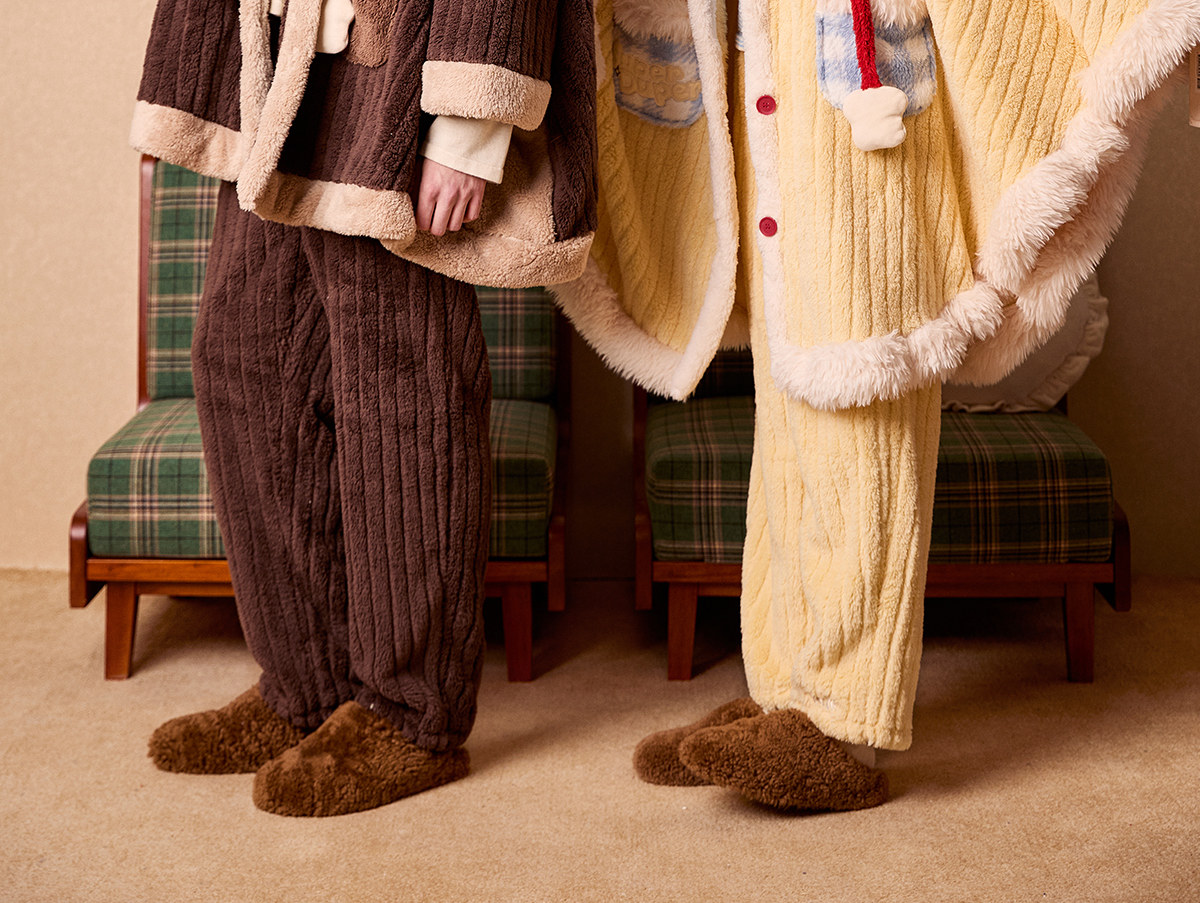 Gukoo/果壳情侣睡衣女秋冬新款奇奇蒂蒂珊瑚绒男士家居服女冬保暖套装D