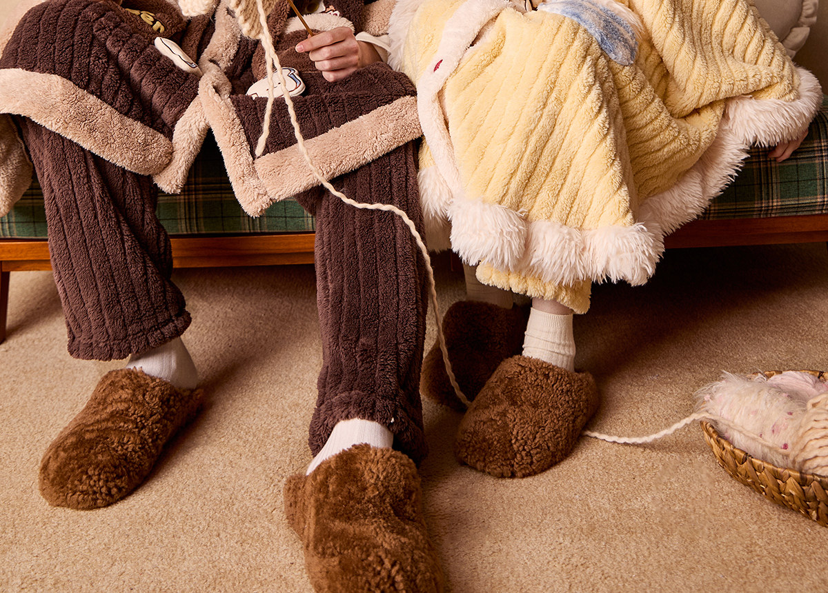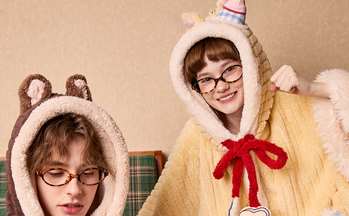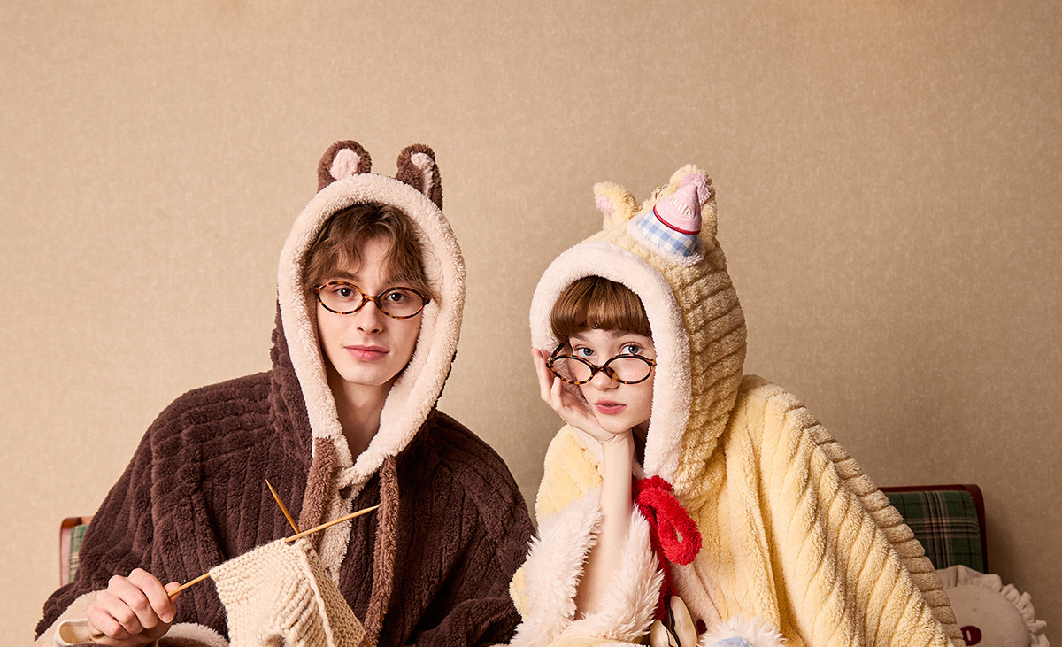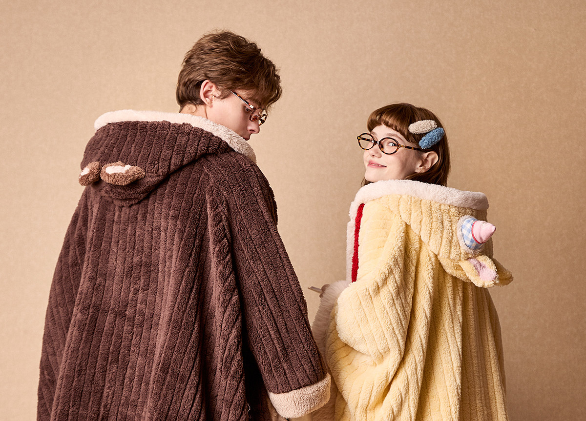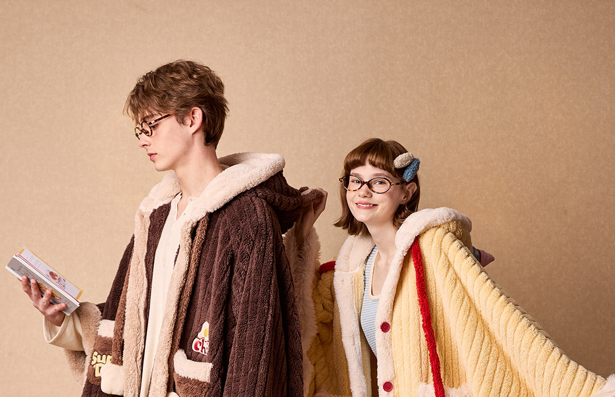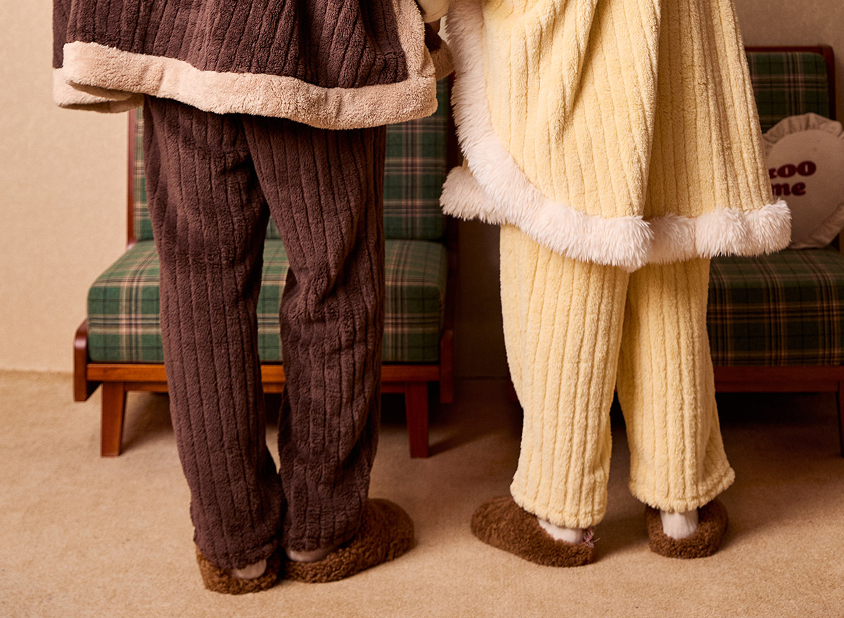 Gukoo/果壳情侣睡衣女秋冬新款奇奇蒂蒂珊瑚绒男士家居服女冬保暖套装D