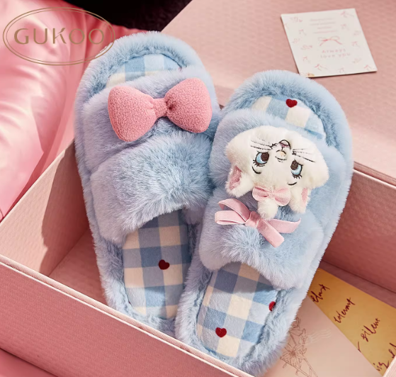Gukoo/果壳拖鞋女冬季玛丽猫联名新款毛绒保暖女士居家毛毛拖鞋