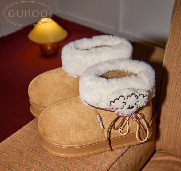 Gukoo/果壳棉鞋冬季毛绒保暖新款拖鞋miiiiichan联名高帮女士居家棉拖鞋