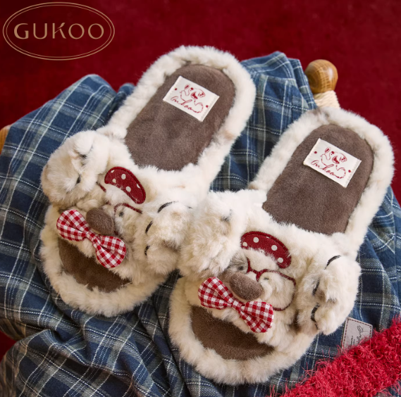 Gukoo/果壳拖鞋女冬季原创bubble小狗毛绒拖2025新款保暖女士居家棉拖鞋