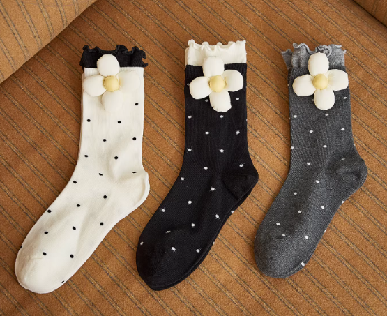 Gukoo/果壳中筒袜女春秋款立体小花新款波点百搭女士袜子组合