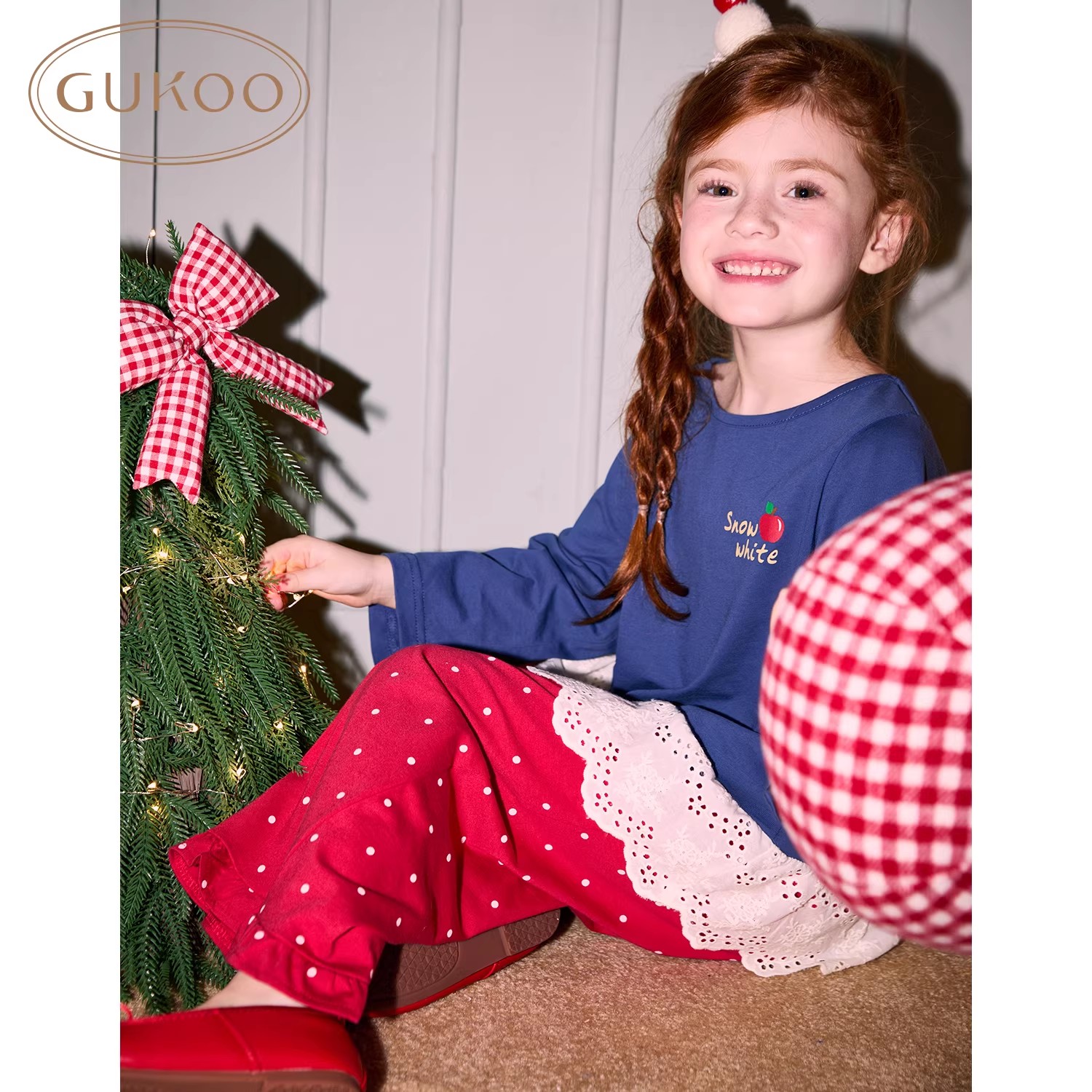 Gukoo/果壳儿童睡衣春秋款白雪公主联名新款纯棉女童家居服套装C