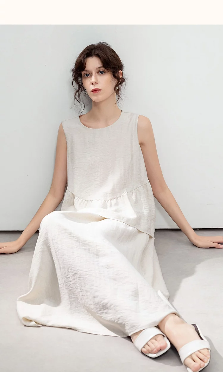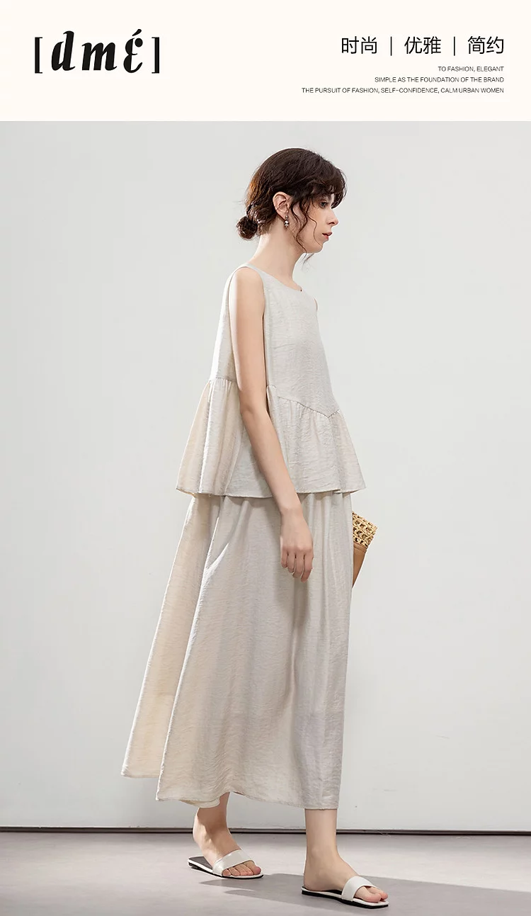 德玛纳【欧若风假两件】轻薄慵懒立体剪花无腰线直筒压褶女式连衣裙G540221558703